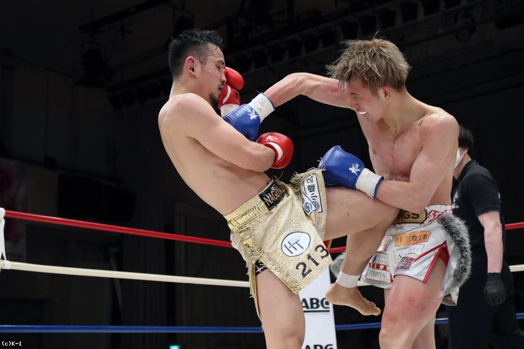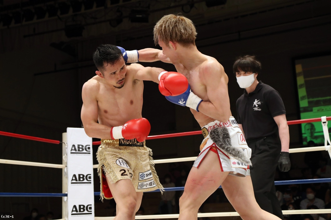 1R、新美は開始から右フック、左ストレートと攻めるが、玖村も引かずに右ストレート、左フックを返す。圧力を掛けていく新美だが、玖村は右ストレート、左フックをリターンする。玖村はガードを固くし、そこから飛びヒザ、バックブロー。だが新美は当てさせない。逆に玖村に飛びヒザ、左ストレートで圧を掛ける。