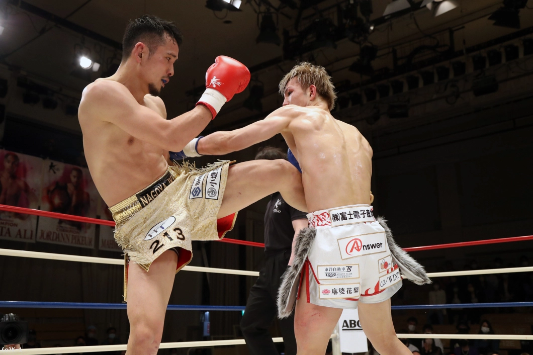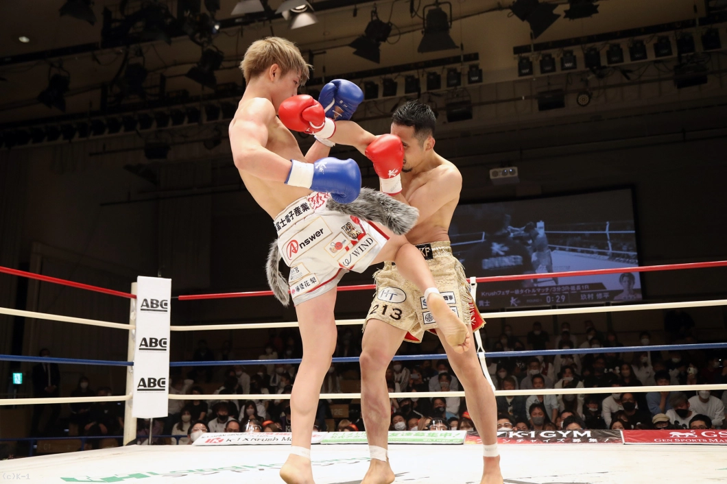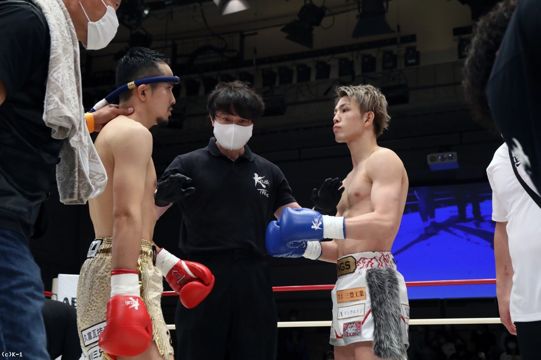 3Rも新美が前に出て玖村をコーナーに詰める。玖村は攻撃の切れ間に右ストレート、左フックを返す。新美のローに玖村はヒザ蹴りで応戦。両者一進一退。ローを当てる新美だが、玖村が右ストレートを中心に前に出てくる。前蹴りから左フック、右ストレートとパンチをまとめる玖村。判定は30-29、30-29、30-29の3-0で玖村。リベンジを達成し、王者となった。