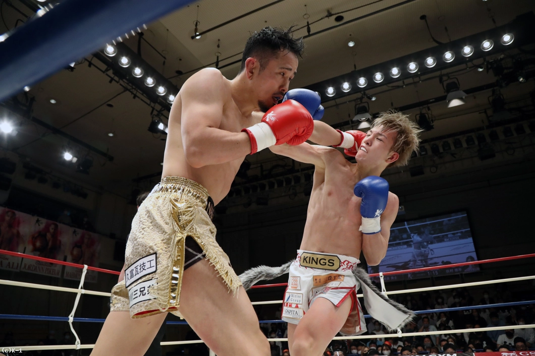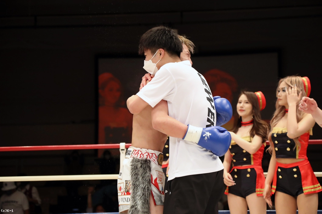 「まずリベンジしてチャンピオンになれてホッとしています。(攻撃を効かされる場面もあったが?)前回の敗戦、あそこで飲まれてそのまま相手のペースでやられました。2月のK-1で盛り返す試合ができて、その感覚も残っていたのもよかったし『リベンジするぞ』「こんなところで終わってられへん』という気持ちで戦って。(勝因は)気持ちの一言です。(チャンピオンになって)まだ実感はないけど、このベルトを巻くために色んな人と縁を切ったり、色んな人に嫌われて悔しい想いをしたし、網膜剥離という怪我も経験したし、負けも経験したんですけど、ぶれないいもちを持ったらチャンピオンになれると思ってやってきました。有言実行できてやってきてよかったと思います。