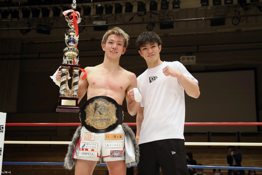 (弟に先を越されて、弟に負けたくないという想いはあった?)それが一番強かったです。周りからも弟のことを言われたり、兄弟でレベルが違うと言われたり、心が折れそうになったり、自分はベルトを巻けないのかなと思ったり。努力は才能に勝てないと言われていたんですけど、自分は努力で乗り越えると言ってきて、それができました。弟は第6代Krushスーパー・バンタム級王者で、僕も第6代Krushフェザー級王者です。ここからは弟に追いついて、弟を追い越したいです。(ファンへのメッセージ)応援ありがとうとざいます。これからKrushフェザー級のベルトの価値をあげていきます」