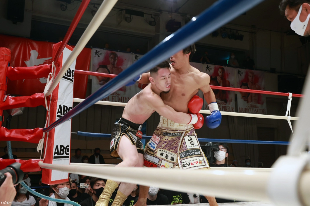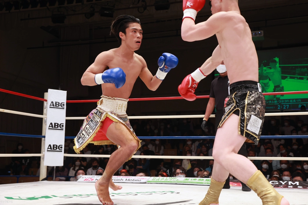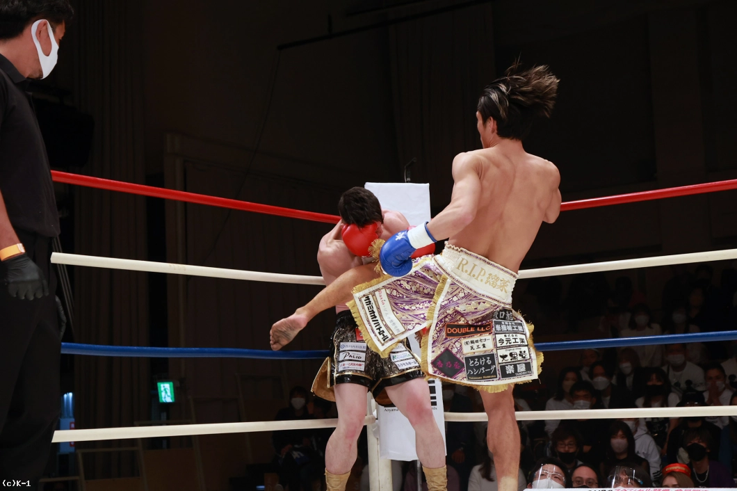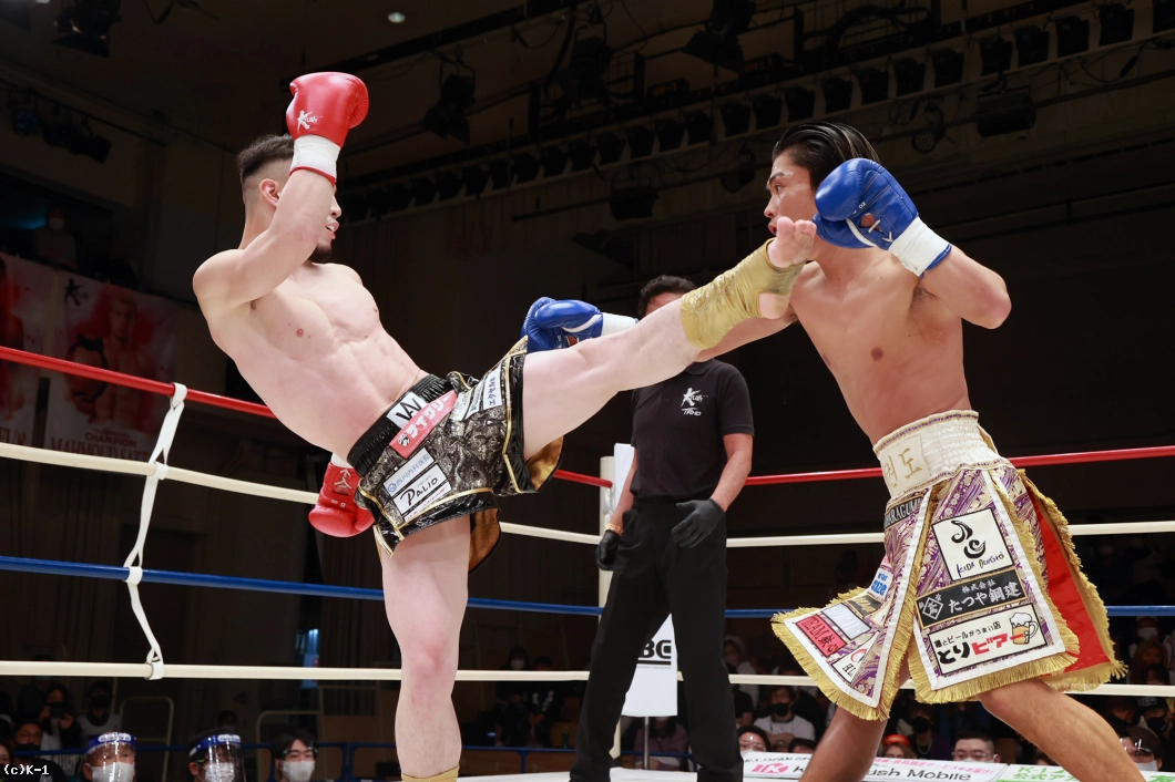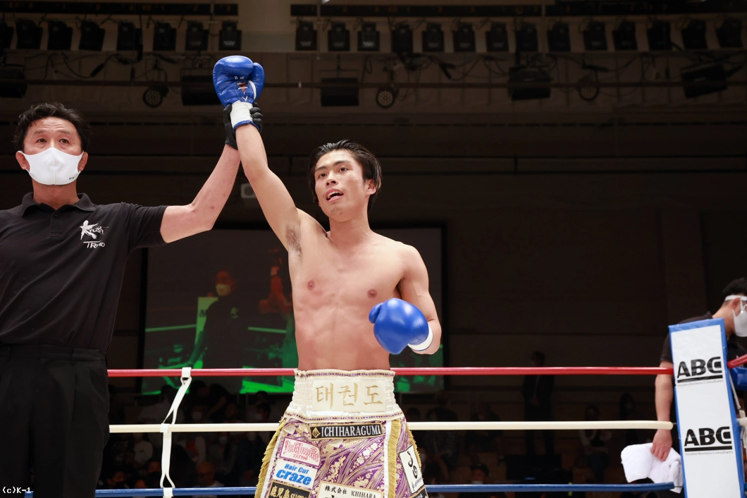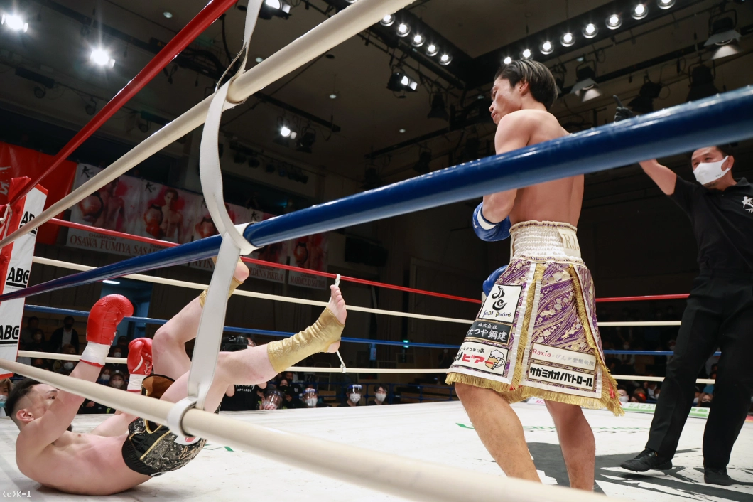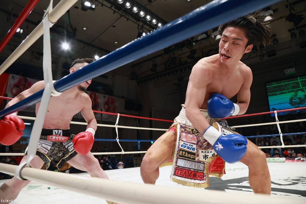 「最初から自分の距離で戦えていたので、これは負けることはないだろうって確信がありました。途中からどうKOするかにシフトチェンジしてたんで、倒すのは最低目標で。足技で派手に倒したかったけど、パンチでいきました。(対戦相手の印象は?)元チャンピオンで強豪にも勝っているので、そこは評価していましたけど、最初から自分とはレベルが違うと思っていたので、それをリングで体現出来てよかったです。(3連続KO勝ちだが)どこまで連続KOを続けるかが課題なんで、二桁までのばしていきたいです。(今後の目標は?)一番近い目標は一回負けている璃明武にリベンジをかけたタイトルマッチを組んでもらいたいです。一回もダウンしてない吉岡選手をKOで超えたんで、挑戦者として文句ないだろうと思うので、タイトルマッチを組んでほしい。もし組まれたら璃明武選手をボコすだけです」