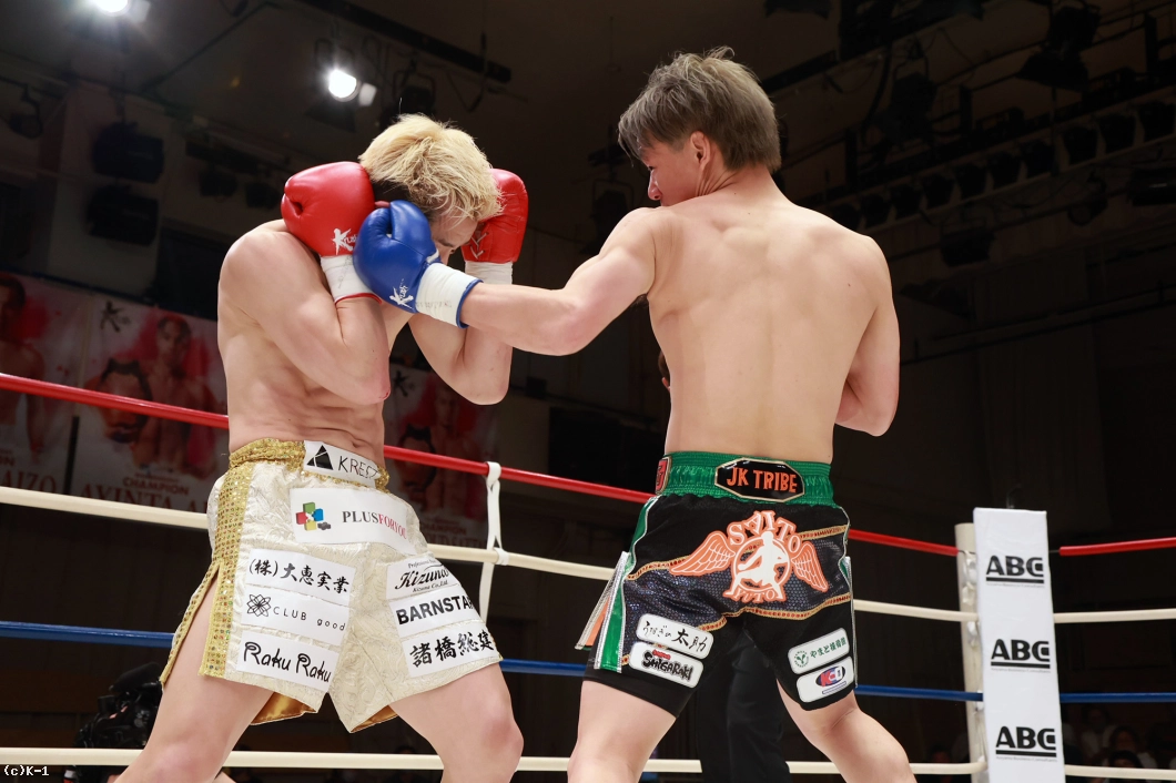 2Rも西元はカーフを入れる。斎藤は左フックを当てて西元に腰を落とさせる。しかし西元は右ストレートを当て返す。手を下げて声を上げ、西元を呼び込む斎藤。だが西元は挑発に乗らず、カーフキックも忘れない。ラウンド終盤、西元は右ストレートを当て、斎藤は大きく体がのけぞる。しかし倒れない。
