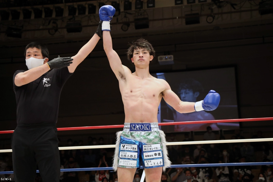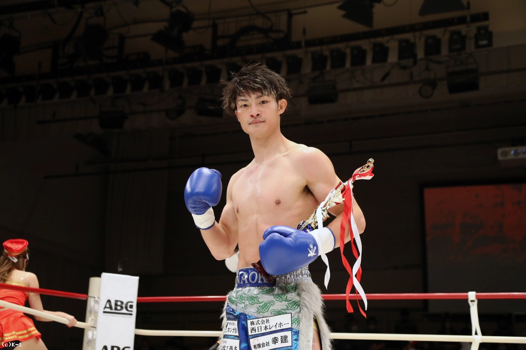 「60kgに上げて一発目の試合でどれだけ動けるか不安やったんですけど、思った以上に動きがよくて、負ける気がしませんでした。(対戦相手の印象は?)もっと蹴りが軽くて、数を多く打ってくる印象だったので、一発一発の蹴りが重くて、やりにくかったです。(今後の目標は?)この階級で名を残す選手になって、チャンピオンになって、K-1 JAPAN GROUP1を盛り上げたいと思います」
