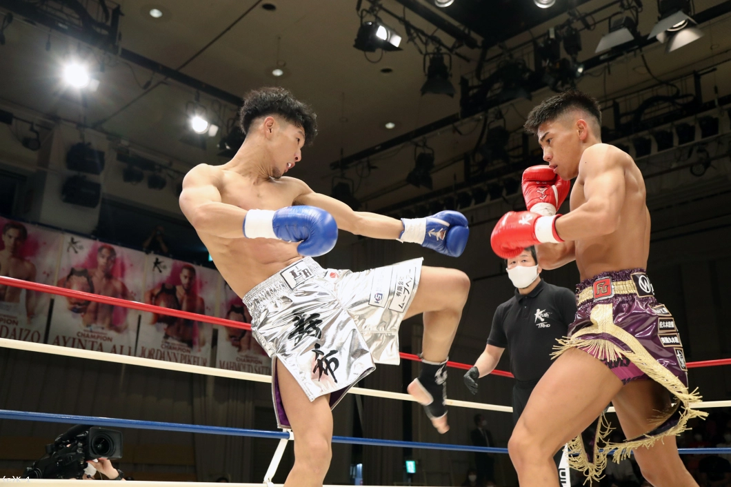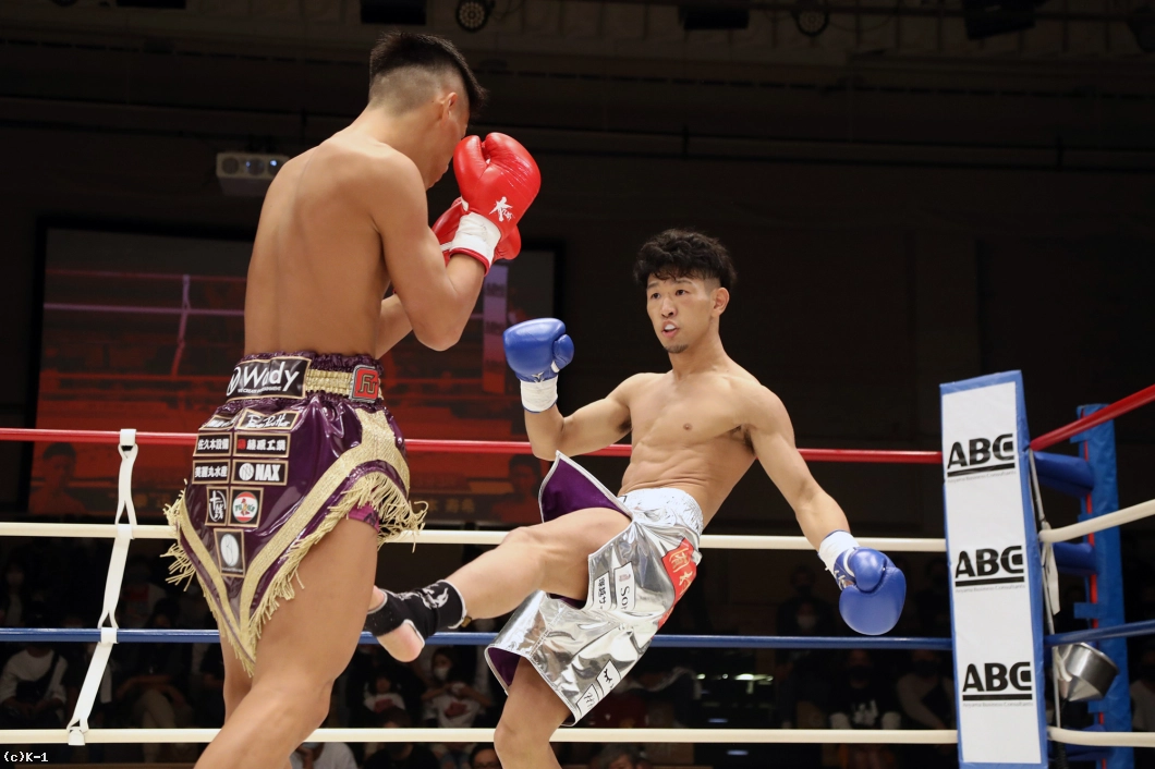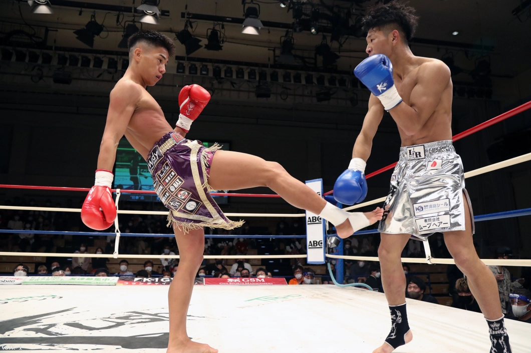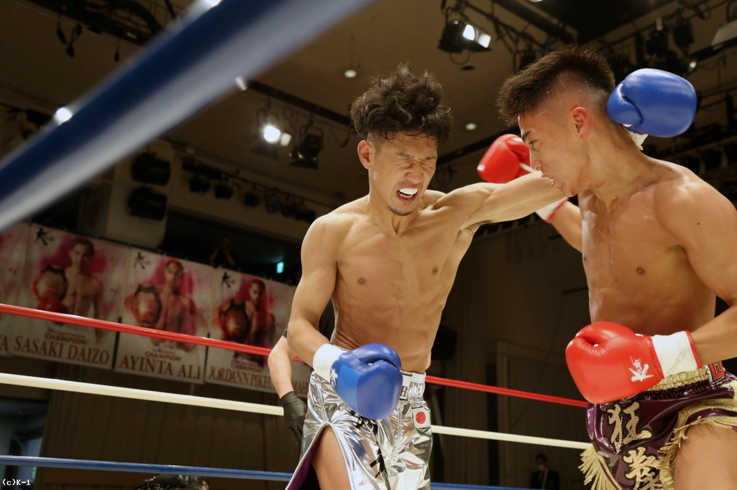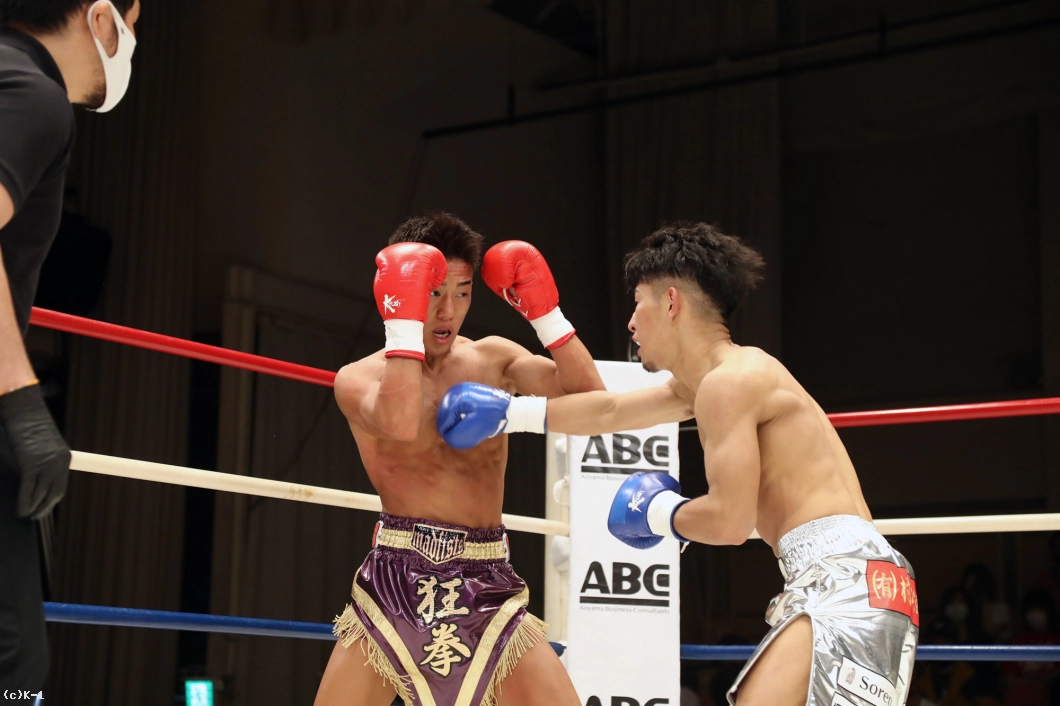 2R、迅は攻勢を強め、右ミドル、右ロー、右前蹴りと坂本にロープを背負わせ、右ストレートと左フックで狙う。坂本は逆に左ローで迅の前進をけん制するが、迅はタイミングのよい右ストレート・右フックで坂本を襲う。