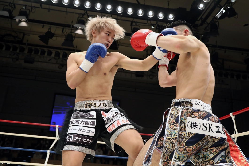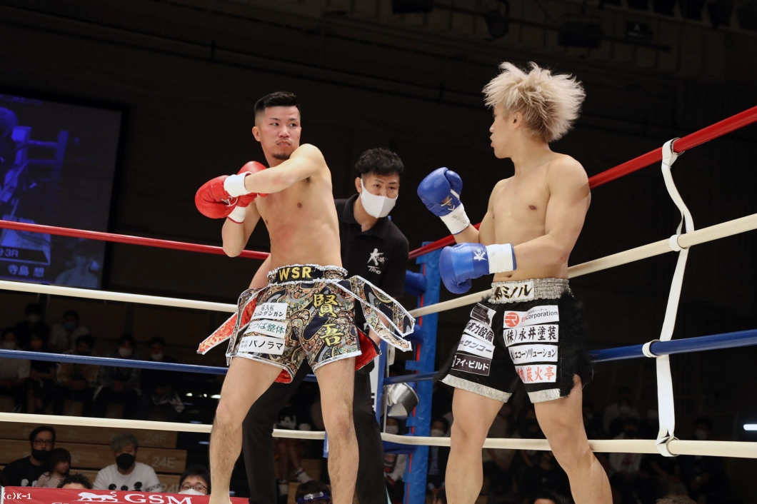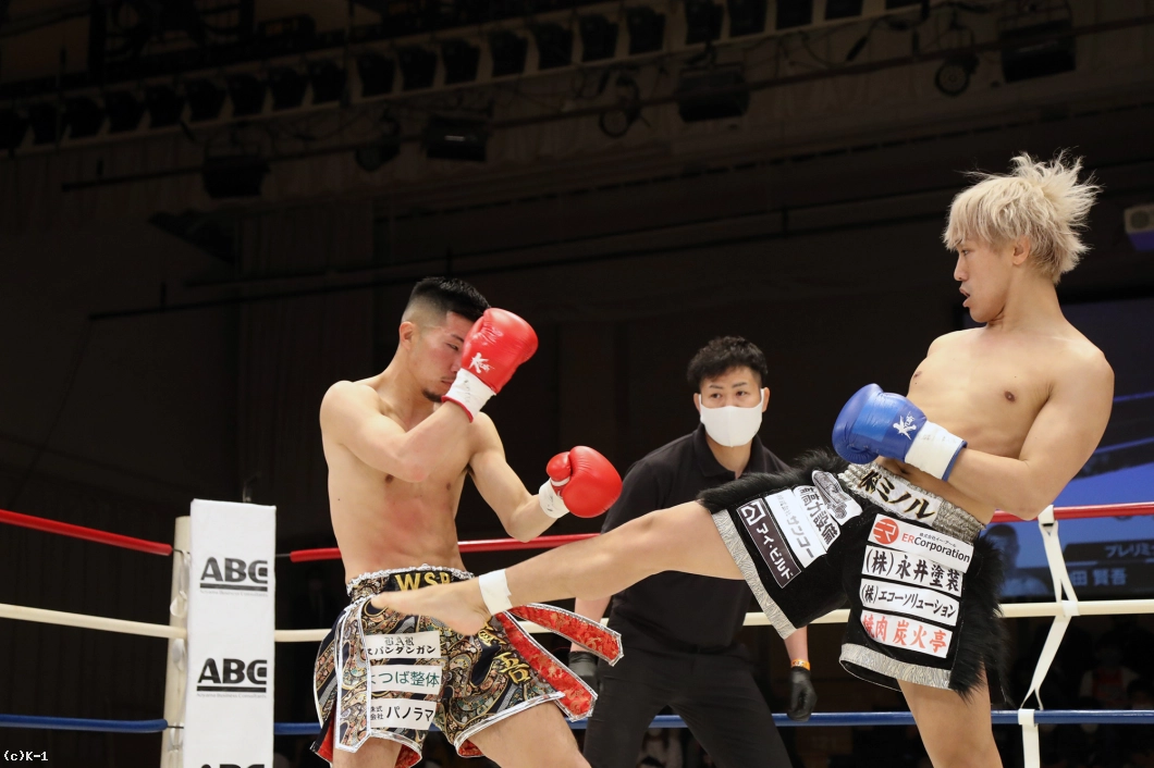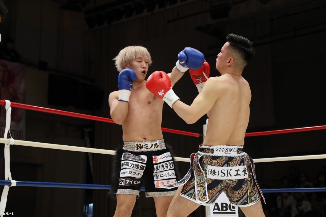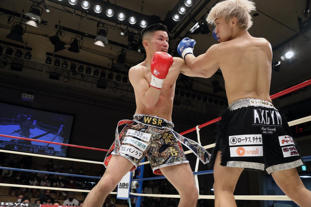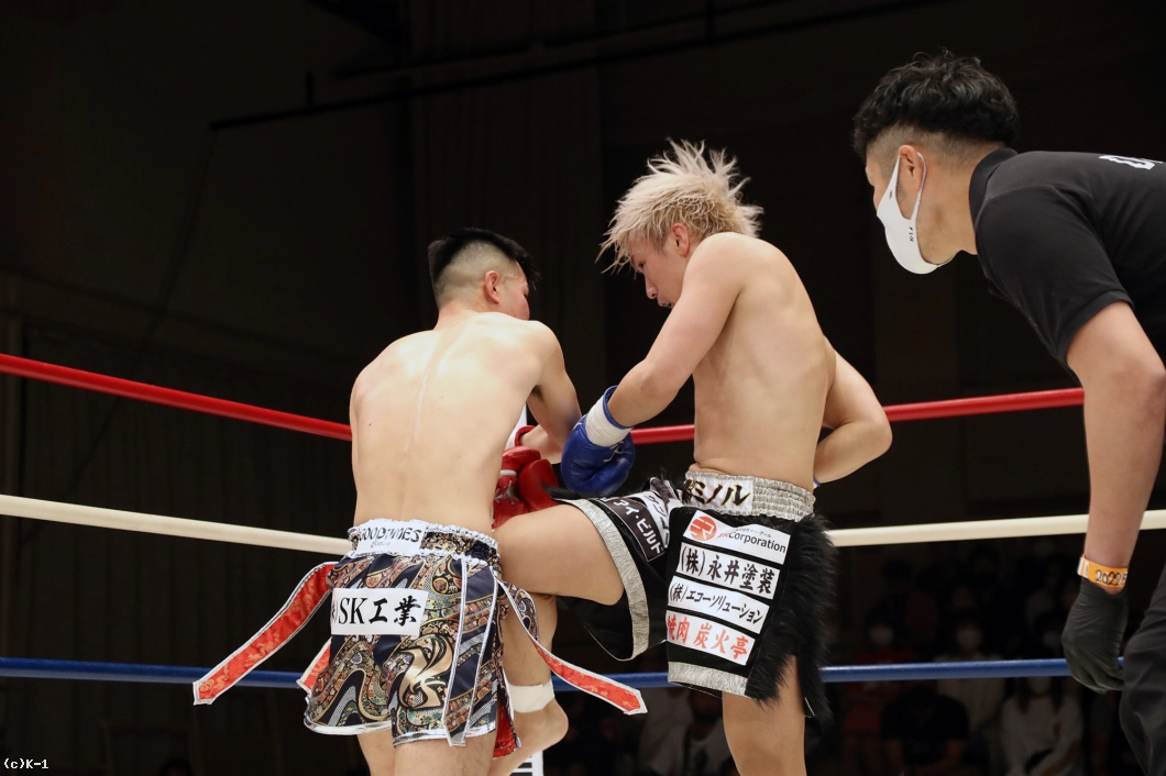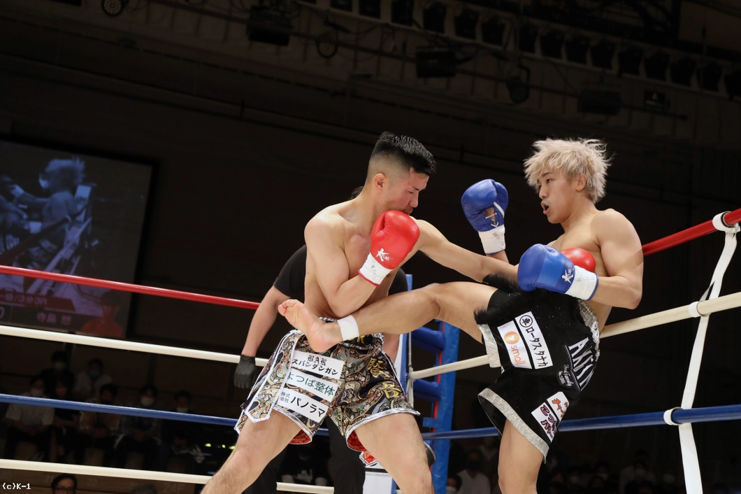 2R、寺島は左右のローとジャブを放ち神田をストップせんとする。さらにカーフキックを繰り出し神田の足を流れさせる。それでも神田は前に出て左フックと右ストレートを振るうが、寺島はディフェンスに長けクリーンヒットさせない。3R、神田は頭をつけるように接近しパンチとヒザを集める。しかし寺島はロープを背にしながらスウェーを駆使し、神田にボディへのヒザ、左ストとレートと反撃する。さらに寺島は飛びヒザも繰り出す。判定は30-27、30-27、30-28の3-0で寺島。プロ2連勝を飾った。