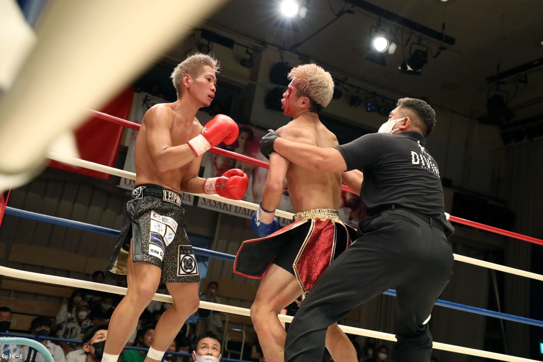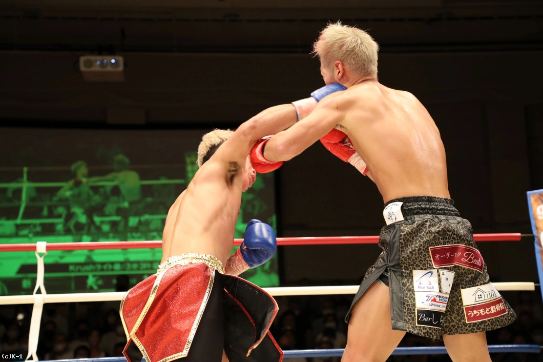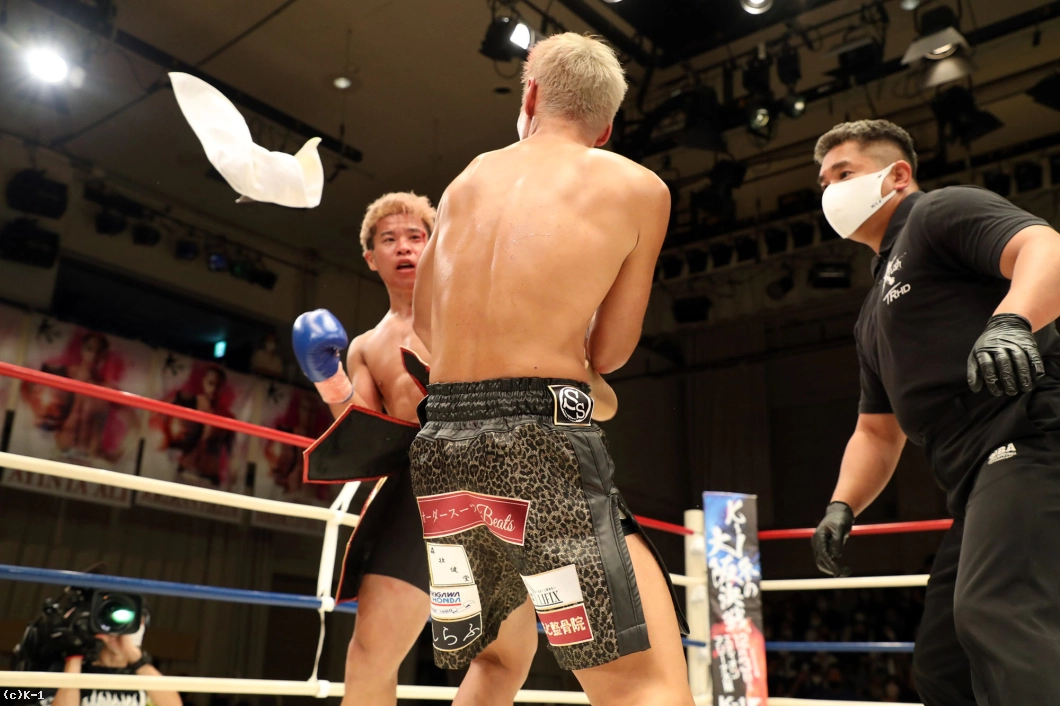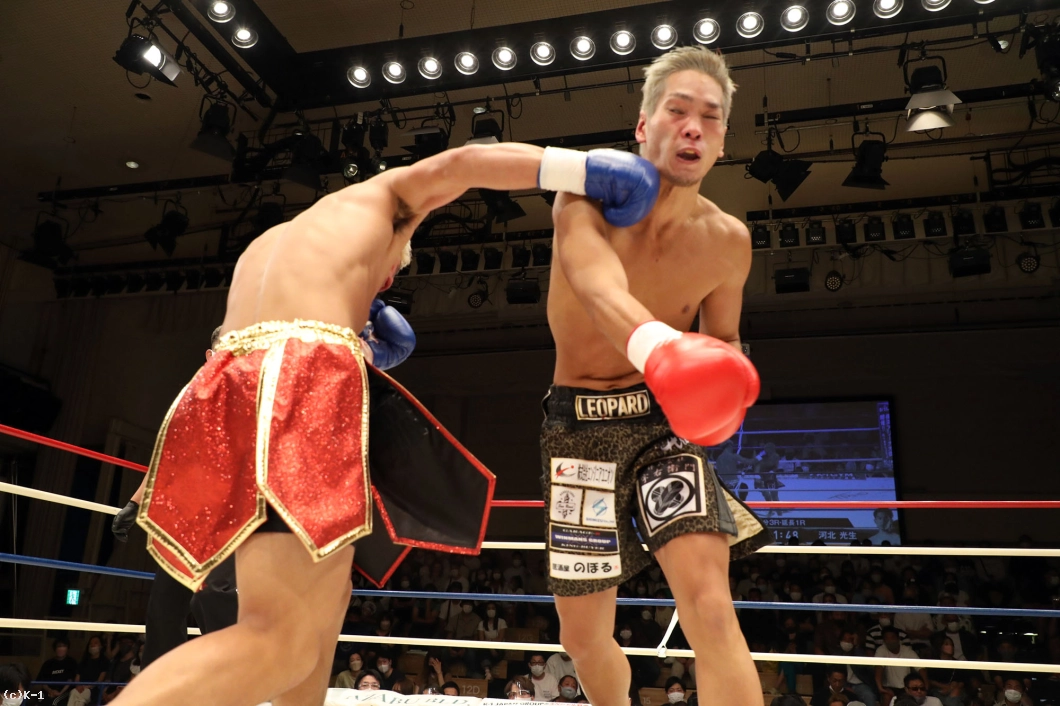 2R、河北は前に出て右フック、カーフキックと新太を攻める。新太も押し返し、右アッパー、左ボディフックと応戦する。圧力をかけていく河北。新太を打ち合いに呼び込むと右ストレートのカウンターでスタンディングダウンを奪う。戦闘再開に応じた新太だが目がうつろで、河北が攻めるとコーナーからタオルが入りTKOとなった。