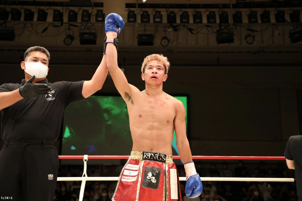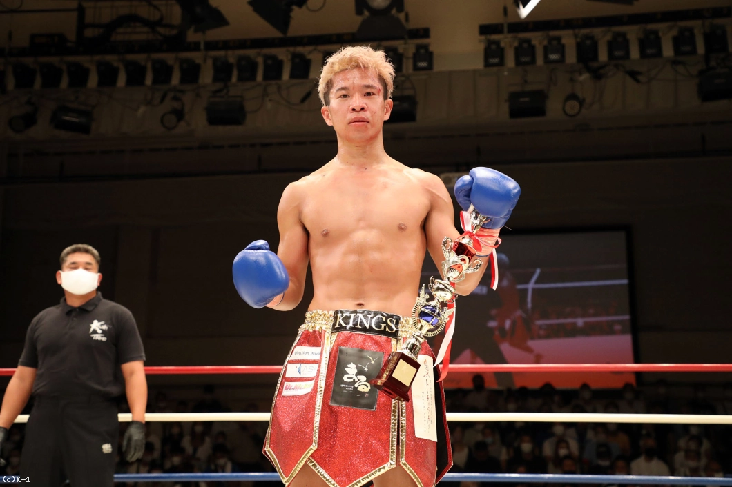 「こんばんは、今回減量から試合まで1人じゃ何もできないのを実感して感謝します。新太選手も強かったです、ありがとうございます。このままじゃチャンピオンとか言えないので、もうちょっとレベルアップして練習頑張ります。絶対チャンピオンになるので名前を覚えてください」