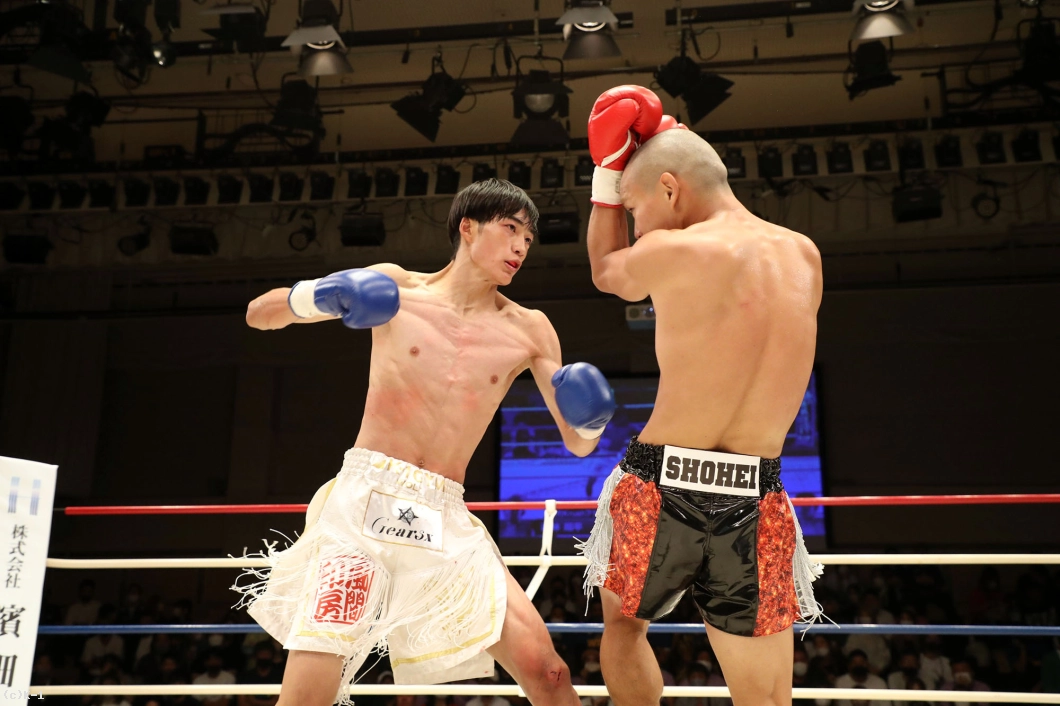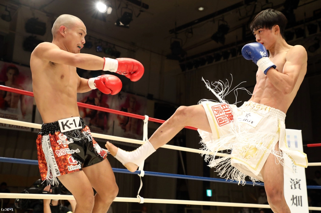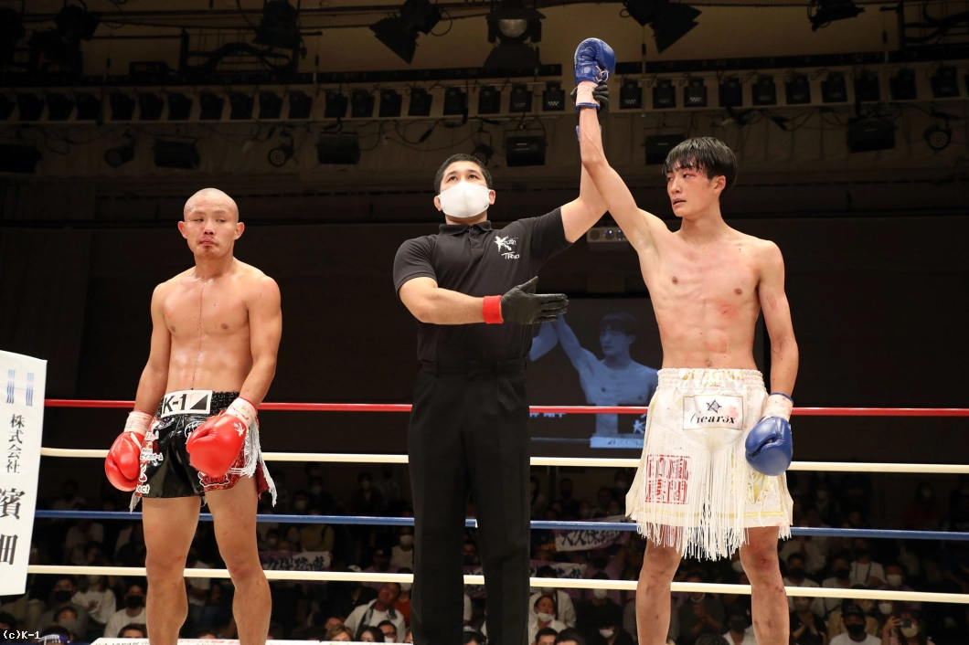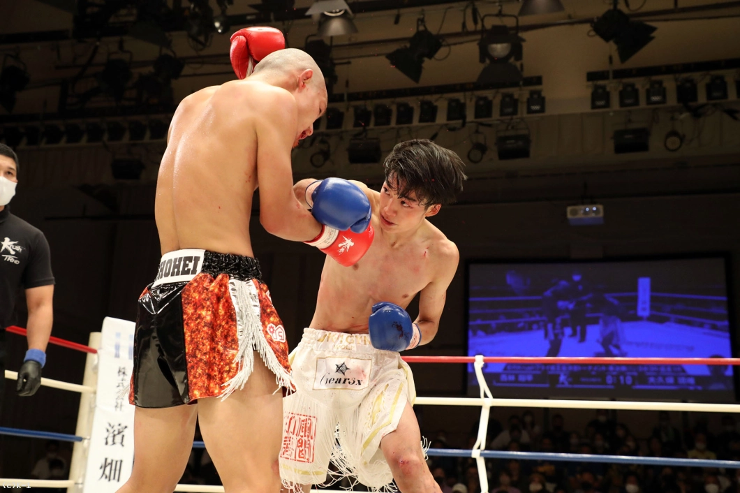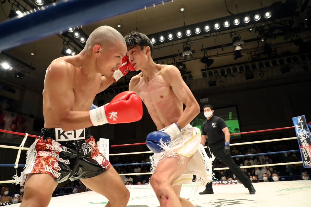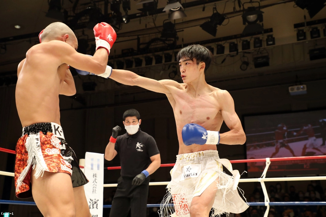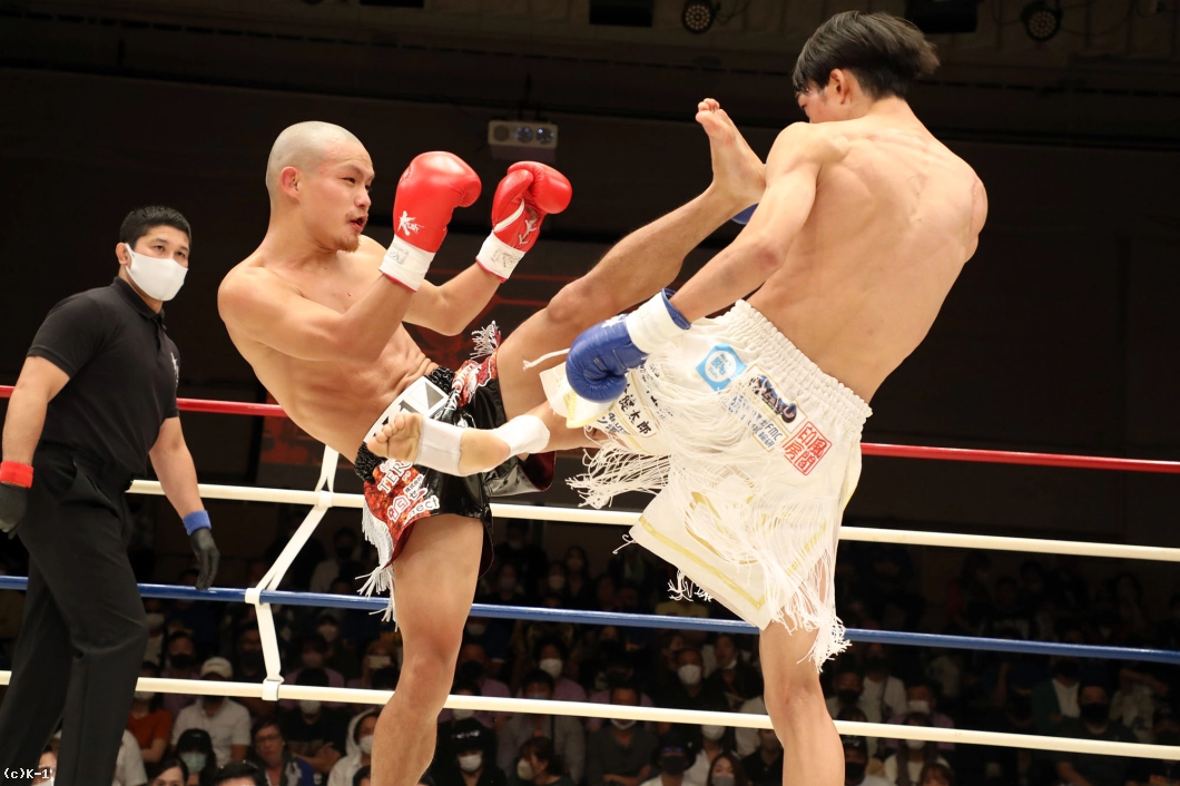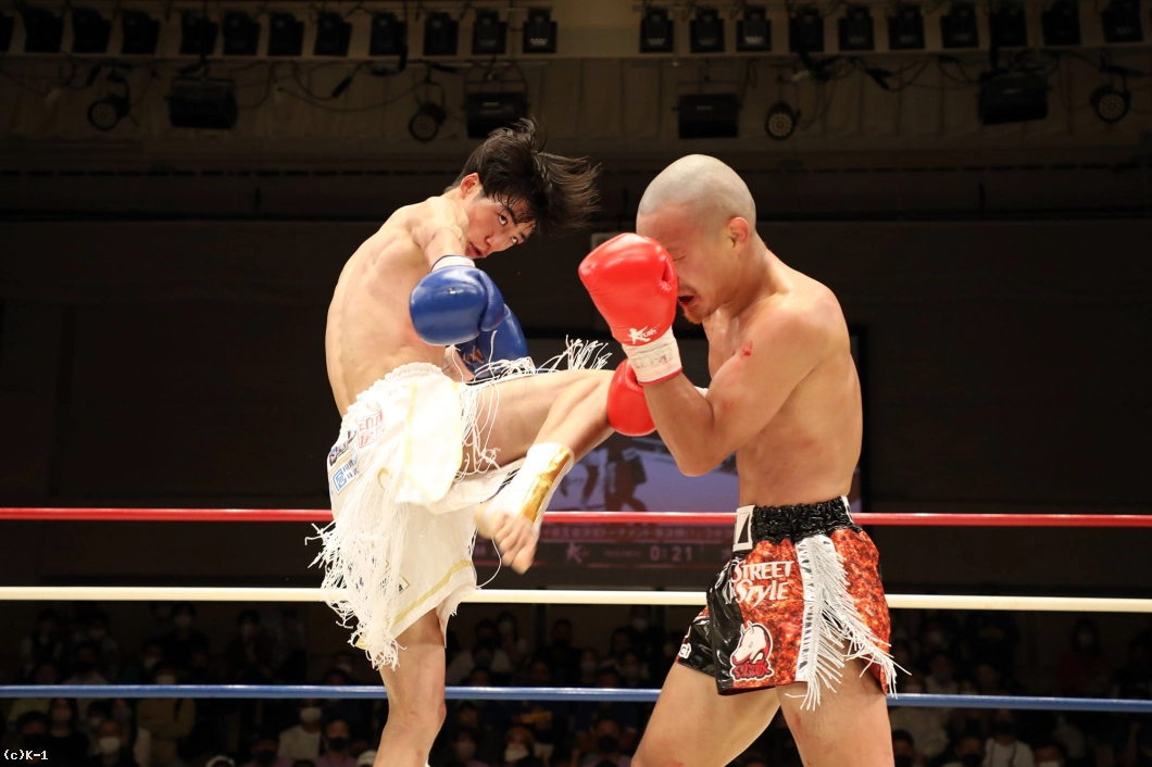 1R、両者向き合うと身長差が際立つ。大久保は懐を深く保ち、ロー・ミドルを入れていく。リーチで劣る西林はパンチを当てるため距離を詰めたいが、大久保は間合いを保ってローとヒザ、ワンツーと振るう。2R、大久保は西林の攻撃をリーチ内で対処しながら前に出てくる。西林も大久保の前進に左右フックを振るって合わせる。大久保は熱くならず、被弾があっても打ち合いに行かず自分の距離での戦いを続ける。