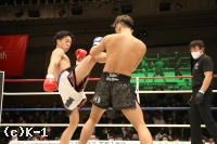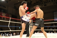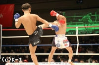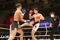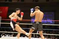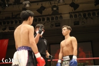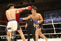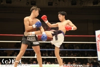 再開すると松谷は左三日月蹴りと左ローを蹴り分け、さらに右カーフキック。そして左ストレート、右ジャブと白幡を徐々に翻弄していく。