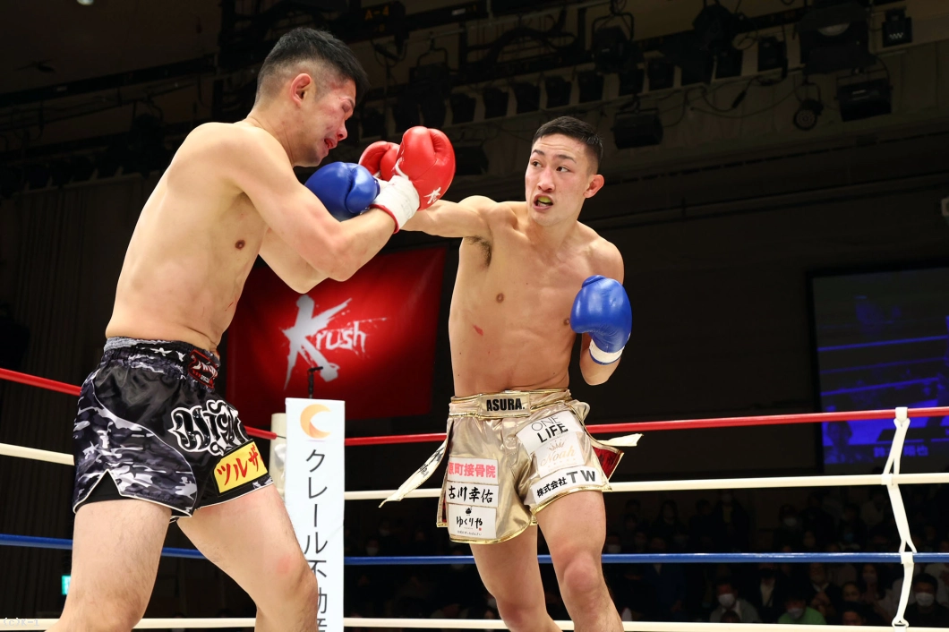 2R、伊藤は左フックでグラつかせるが、鈴木もしかし左ミドルとパンチで前に出る。だが右ストレート、左ボディと伊藤が打ち勝つ。しかし鈴木はワンツーの右ストレートで伊藤をとらえダウンを奪い返す。