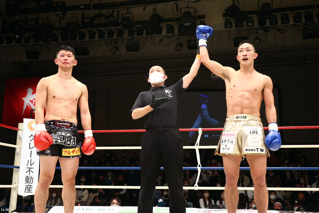 判定は28-27、28-27、29-27の3-0で伊藤。ダウンの飛び交う激闘を制した。
