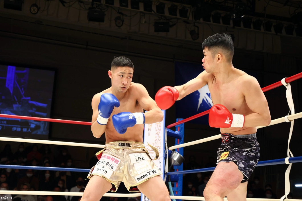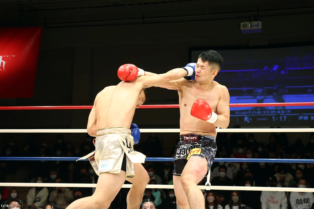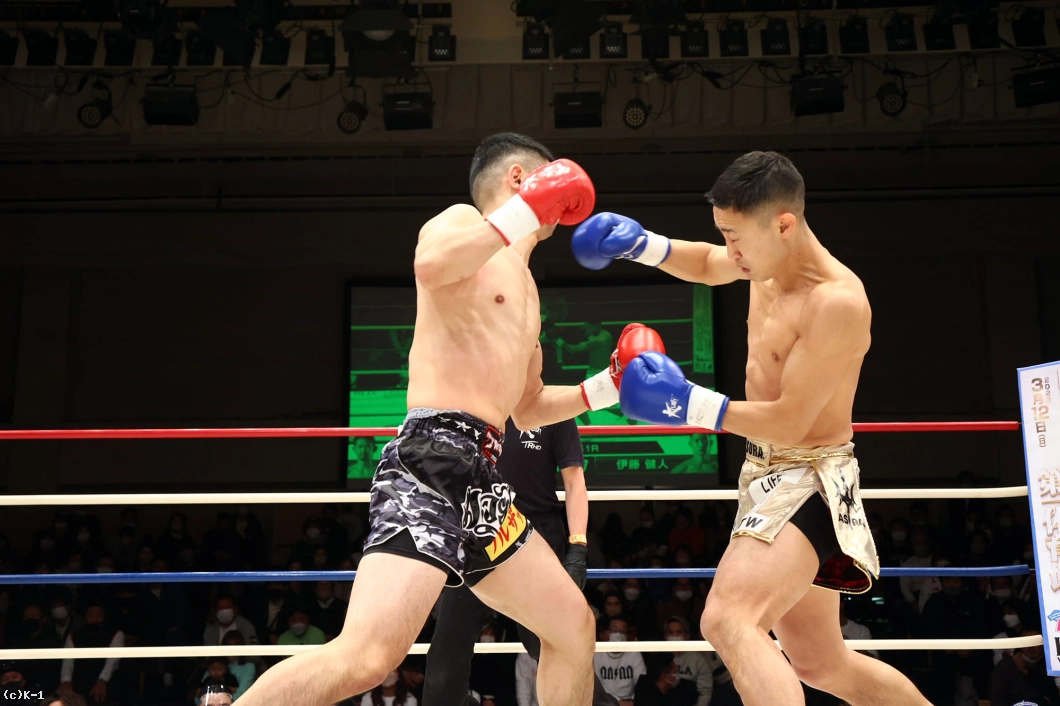 3R、鈴木の目の負傷がチェックされるが再開。前に来る鈴木に伊藤は右ストレート、左フックとヒット。だが鈴木はプレスを弱めない。鈴木がローを入れれば伊藤はハイキックを返す。距離を詰め、混戦に持ち込まんとする鈴木。伊藤はバックステップして鈴木のパンチを避けながら右ストレート、左フックとヒットを重ねていく。