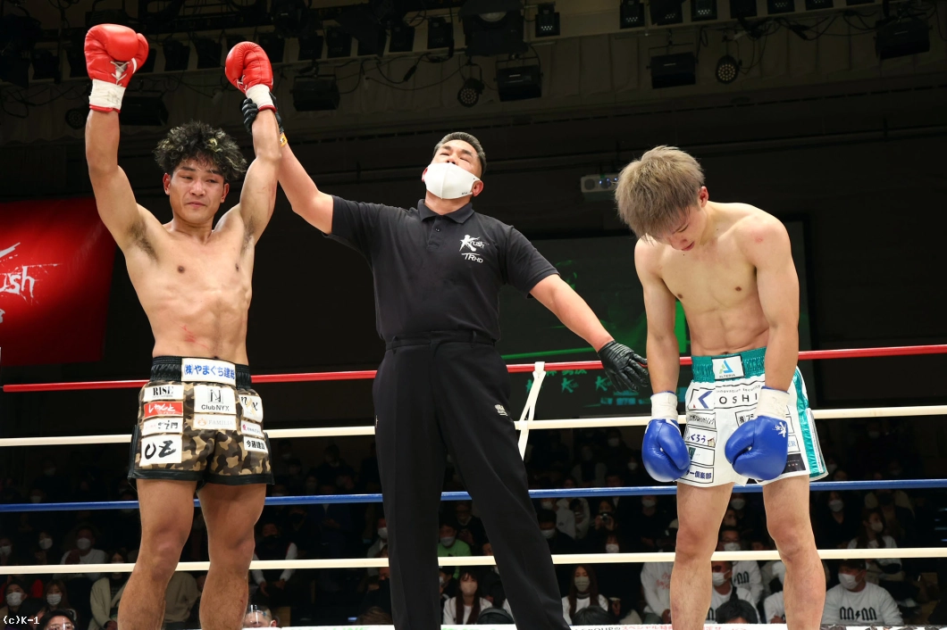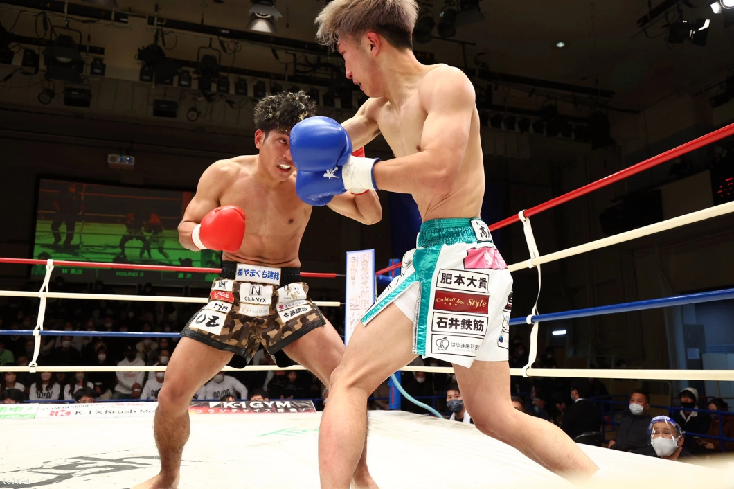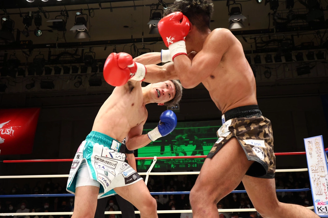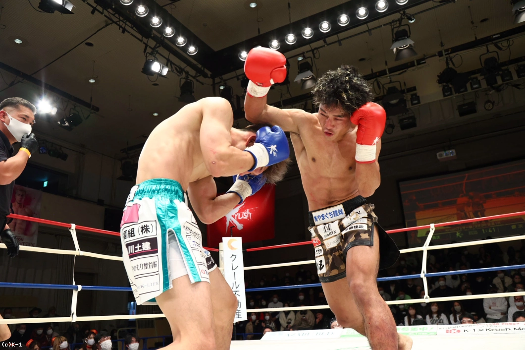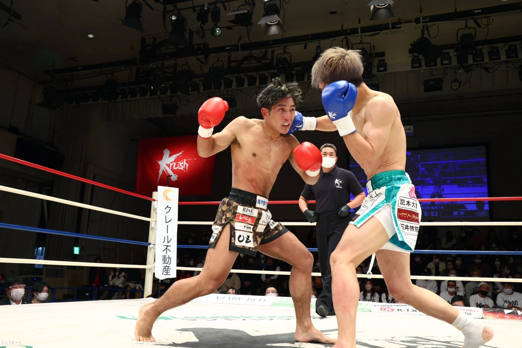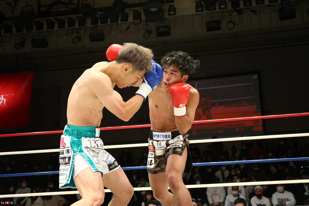EXR、両者打ち合いとなり、頭がつく程の距離となる。クリンチもあり互いに有効打を見舞えない。2者ともにホールディングの警告を受ける。バッティングが見られ中断となった後で再開すると両者再び打ち合いとなり、銀次はハイキックを織り交ぜる。林も右・左とフックを当てて延長を終える。