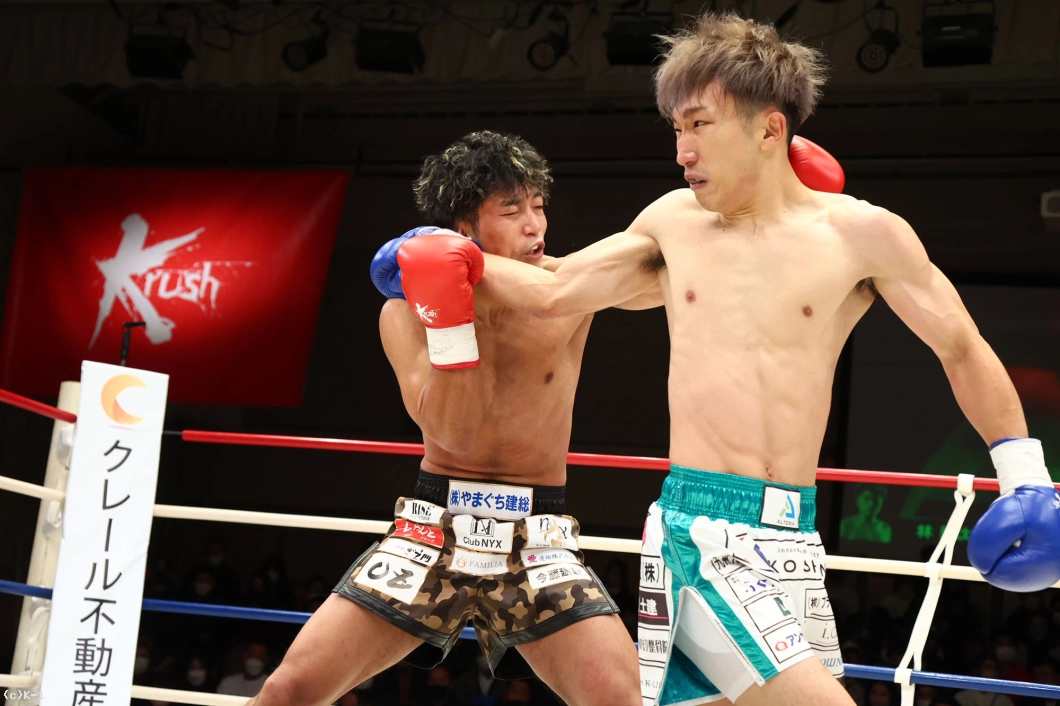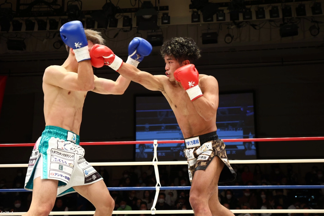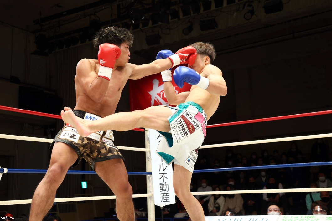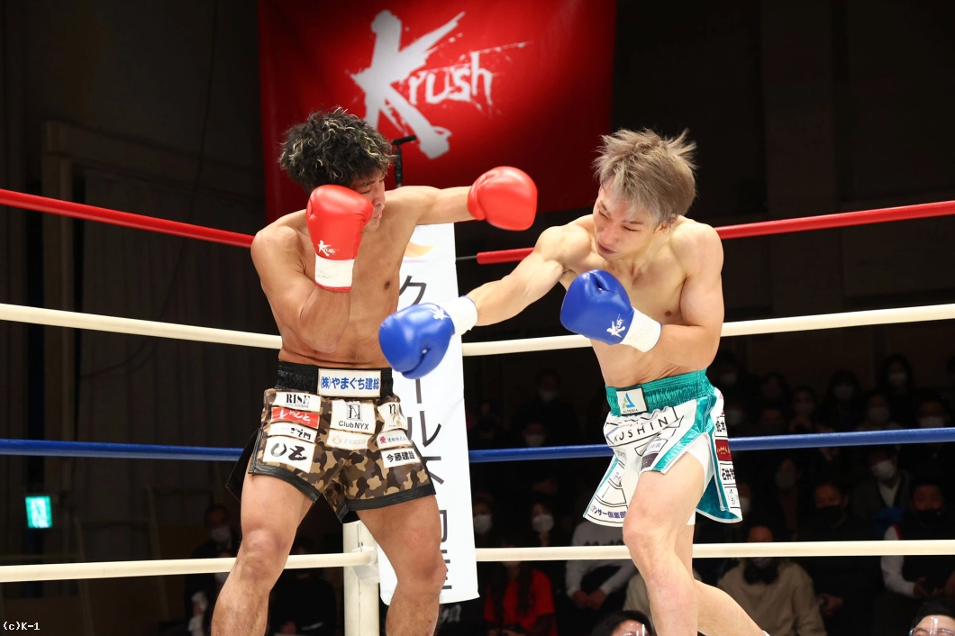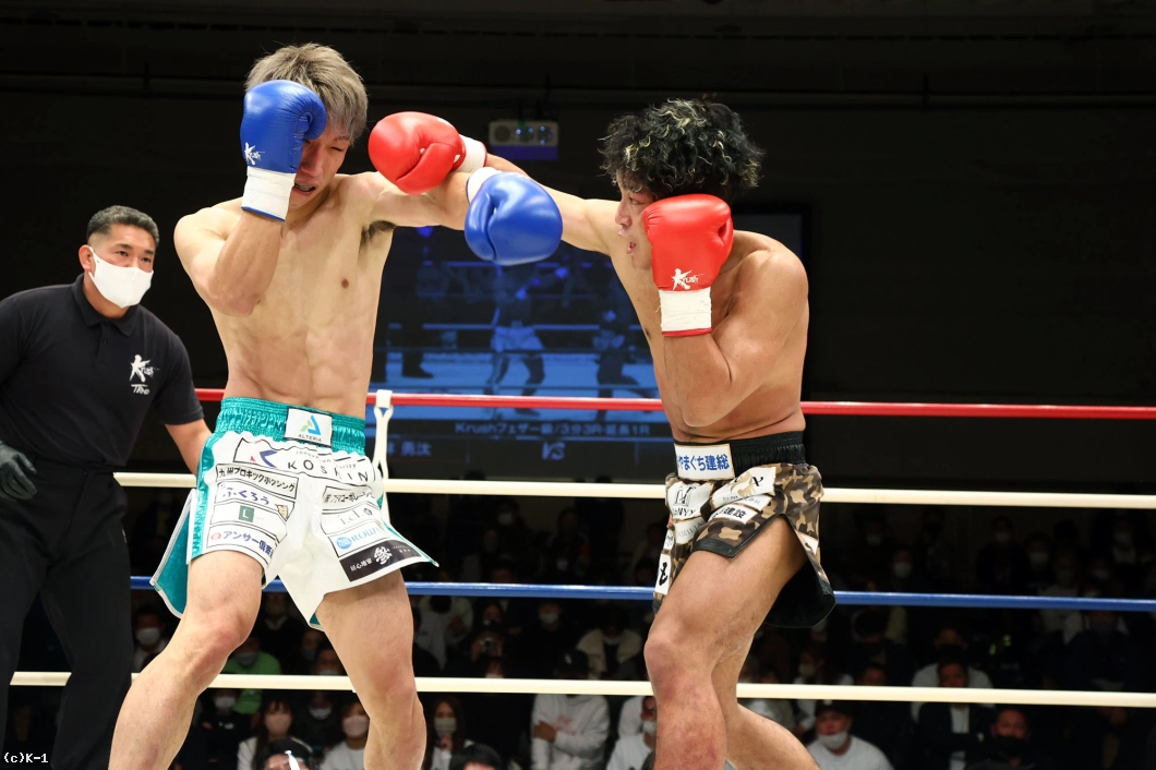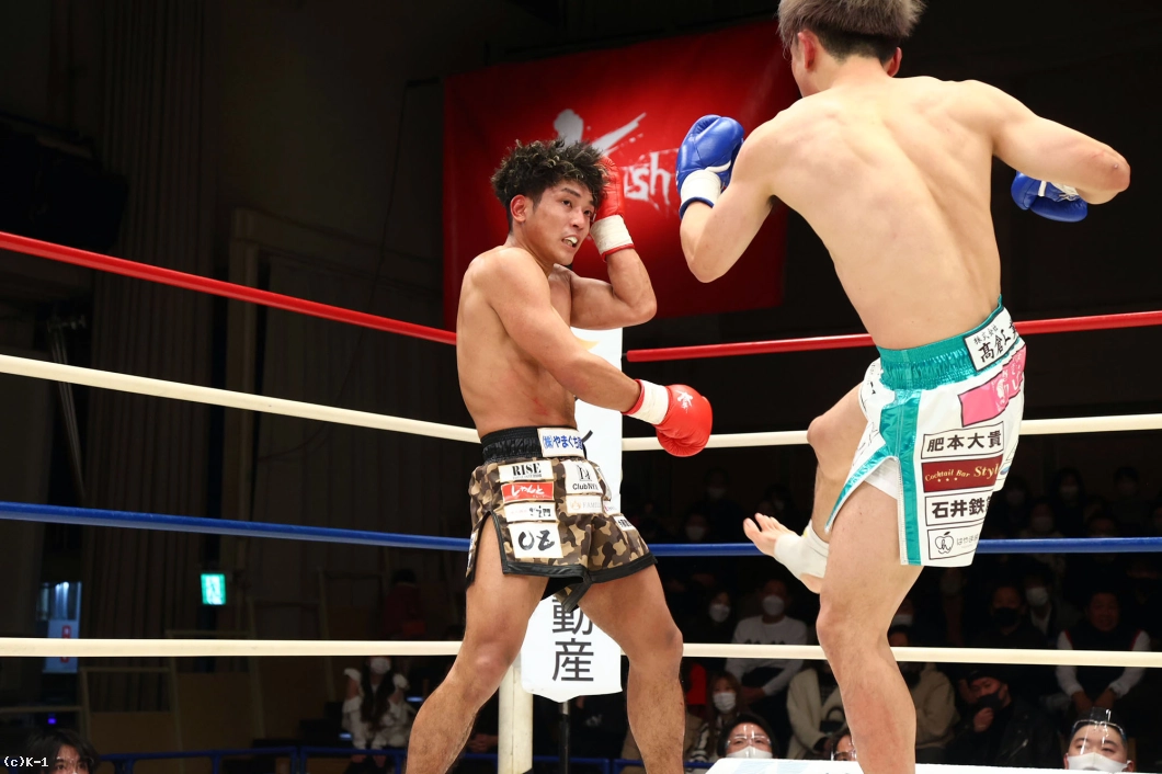 EXR、両者打ち合いとなり、頭がつく程の距離となる。クリンチもあり互いに有効打を見舞えない。2者ともにホールディングの警告を受ける。バッティングが見られ中断となった後で再開すると両者再び打ち合いとなり、銀次はハイキックを織り交ぜる。林も右・左とフックを当てて延長を終える。