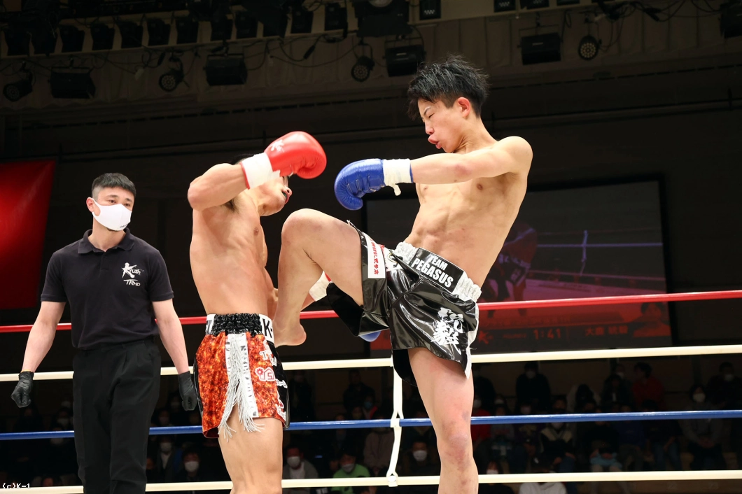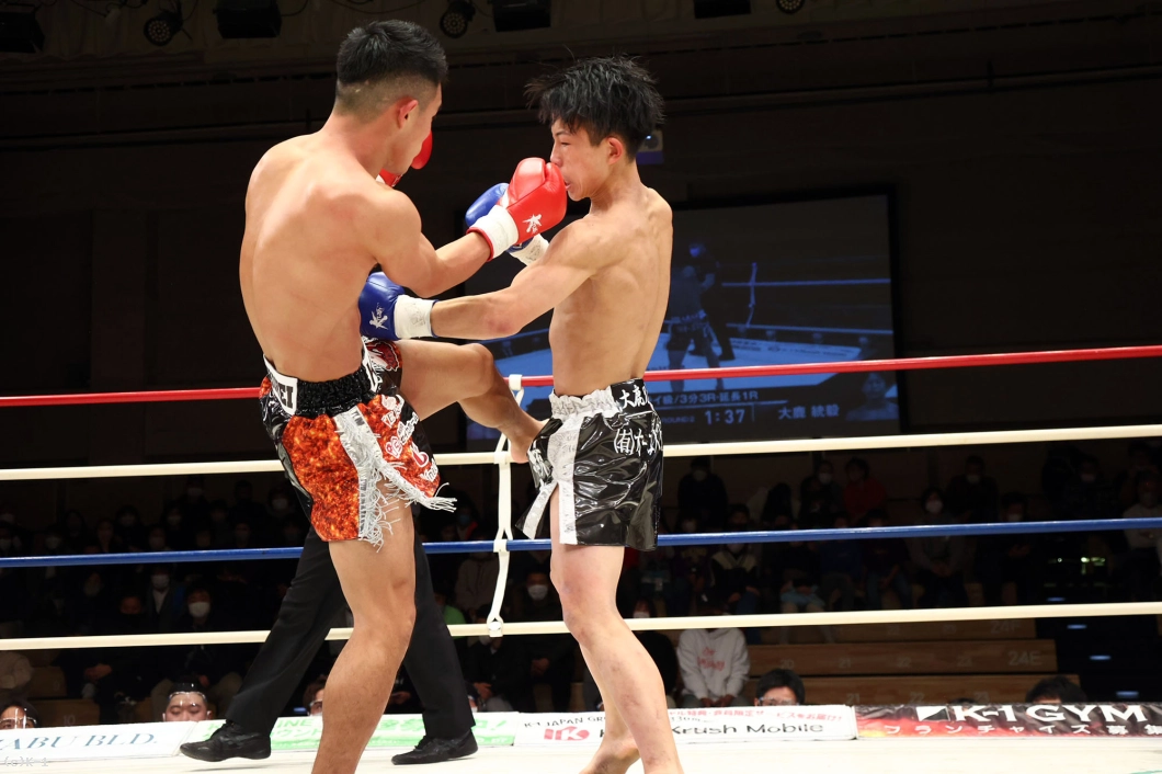 3Rも前に来る西林に大鹿はジャブと前蹴り。大鹿はボディフックだけでなく左ミドルでも西林をとらえる。徐々に西林の失速を呼んだ大鹿は顔面前蹴りも決め試合を終える。