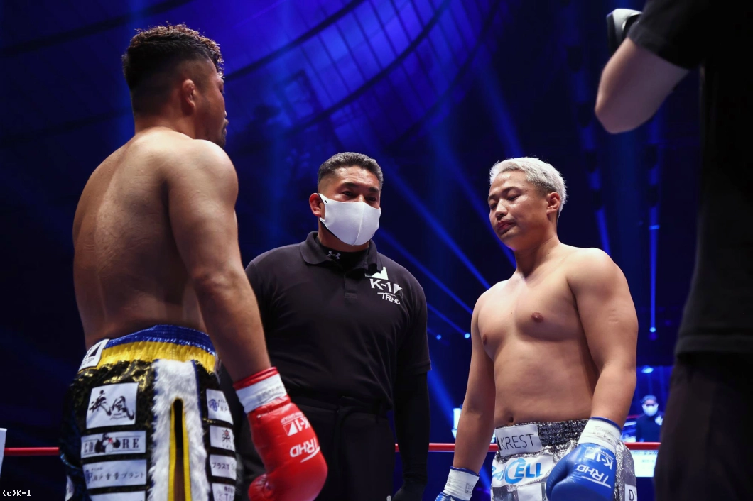 「(試合の感想は?)倒せなかった上に判定で負けてしまって、すさまじく悔しいですね。(相手の印象は?)もうちょっと顔面……今回の試合だと、彼が空手で足で、僕がどっちかというとパンチで、自分が思ったより、彼は空手家だけど、スパーリングをKRESTでやってるだけあって、けっこう重たいの入れたと思ったけど、耐久してたなっていうのがありますね。