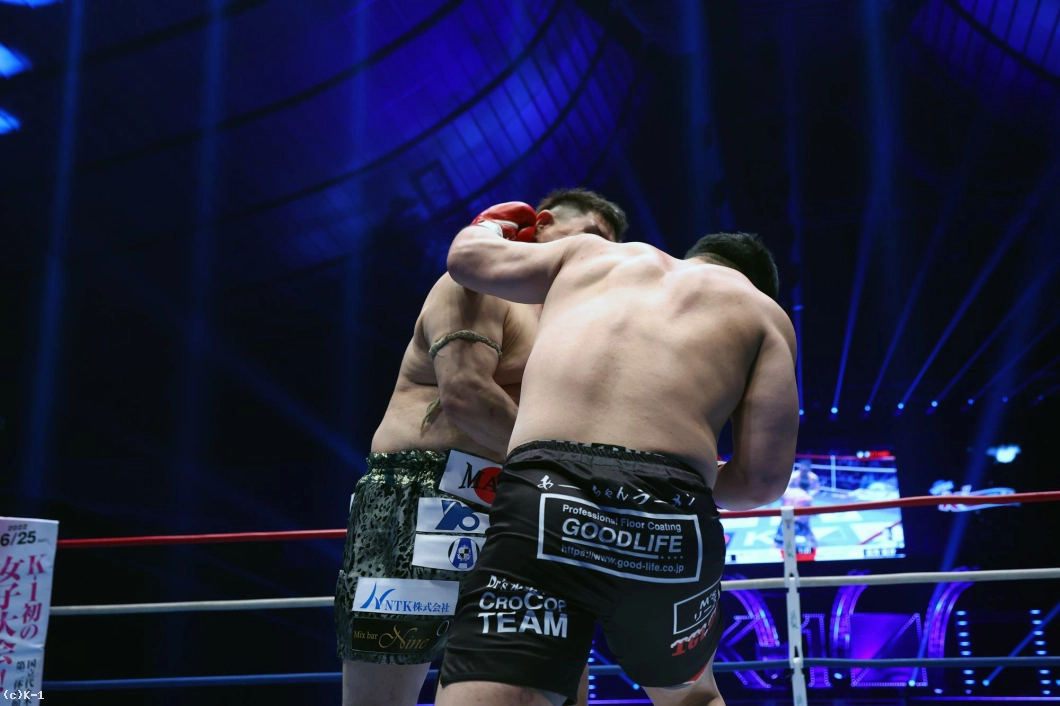 「(試合の感想は?)やられました。(相手の印象は?)体が大きいんでプレスを感じるかなと思ったんですけど、やってみたら思ったよりそんななかったんで。多少はあったんですけど、思った以上にはなかったです。(パンチ力が予想以上だった?)1回目のダウンはホントに吹っ飛ばされたという感じで、自分の中でそんなに効いた感じはなくて。2Rに入って、三日月蹴りが腹に相当効いたのは分かったので、いったところにヒザも入って、自分の意識も忘れてて。見えないところにいったので、アゴ先にもらったかなっていう感じだったので。パンチ力があったかなかったかって言ったら、最後のは見えてなかったので。まあでも、重さはありましたね。