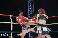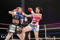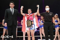 「(試合の感想は?)タイ人として初のK-1女子王者になれて、本当にうれしく思ってるし、光栄なことだと思ってます。(対戦相手の印象は?)1回戦目に関しては体格も同じくらいでしたし、自分が思うように技を出すことができたんですけど、決勝は菅原選手は背も高くて、思ったような試合運びができない部分はありました。(今日の自分の動きでよかったところは?)1回戦目は蹴りの部分で対戦相手を上回ったと思います。決勝は自分が思ってるような試合ではなく、全力が出せなかったです。