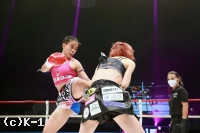 (終わったばかりだが新しい目標ができた?)自分の中では全然、新しい目標ではなくて。自分はまだkrushに出始めた頃に、高梨選手とパヤーフォンちゃんの試合を見て、あの高い壁を越えないとチャンピオンになれないと思っていて。自分はたまたま王座が空いたところで、運よくベルトを巻いてるんで。その壁は高かったなっていう感じなんで。新しい壁だなってわけじゃないですね。(ファンの方にメッセージを)押忍、たくさんの応援ありがとうございました。これからもしっかり前を向いて、強くなれるようにがんばります」