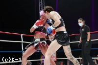 「(試合の感想は?)今日はKOで試合が終わって、それはそれで熱い試合じゃなかったかなと思っています。1Rに右の大きなヒットをもらって、それが試合の方向性を決める大きな一発だったと思います。(最初のダウンのダメージは?)最初のダウンは見えてなくて、ダウンをもらった時は何が起こったか分からない状態でした。ダウンをもらったことでそこから激しい試合になりました。(KANA選手のどこに強さを感じましたか?)顔への攻撃もありましたが、特に脚への攻撃が強いなと感じました。(ファンの方にメッセージを)皆さんご覧いただいてありがとうございました。今回は負けてしまいましたが、必ず復活して戻ってきて、次はもっといい試合をしたいと思います」