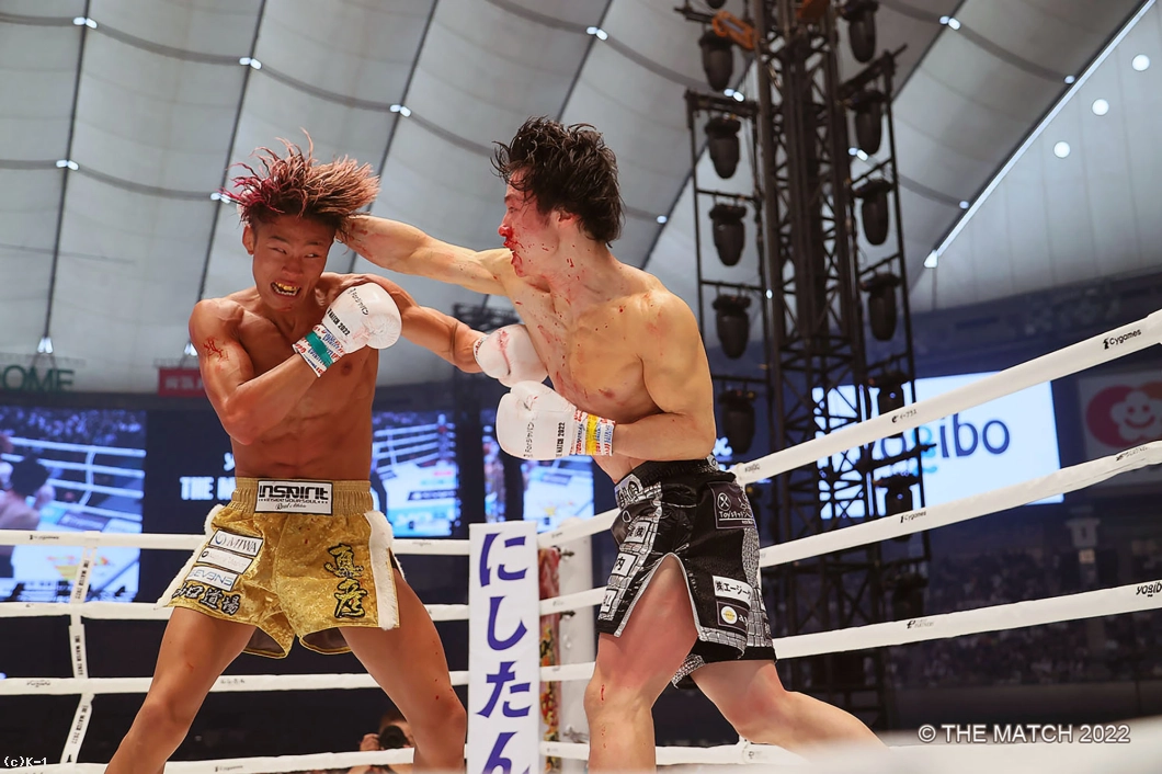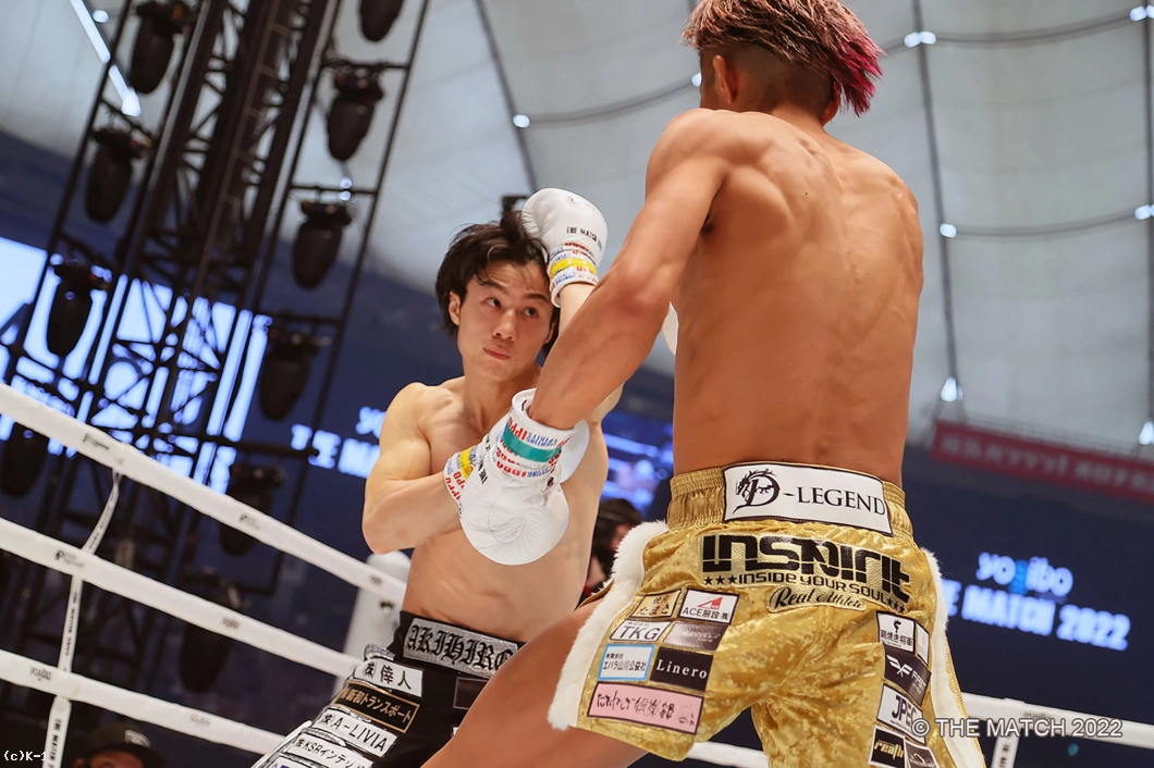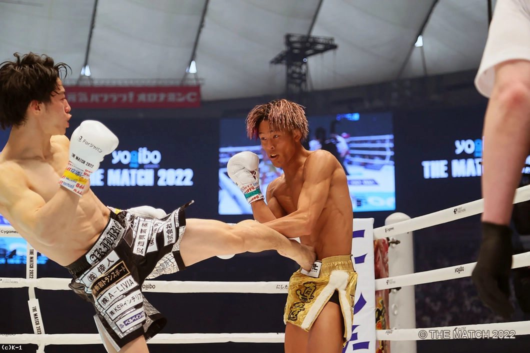 3R、金子が左ジャブで距離を測り左ボディ。鈴木は右カーフキックからワンツー。プレシャーを強める金子は右ミドル、左フックで距離を詰めると鈴木は右ストレートをヒット。金子が鼻血を出し始める。前に出る鈴木に金子が左前蹴り。鈴木は右ストレートを上下に散らし金子を下がらせる。ロープを背負う金子に鈴木がワンツーで迫り、金子が左フックを返したところで試合終了のゴングが鳴り響く。判定は30-28、29-29、30-29の2-0で鈴木。歴史的大イベントの第1試合はRISE王者の鈴木が勝利を収めた。