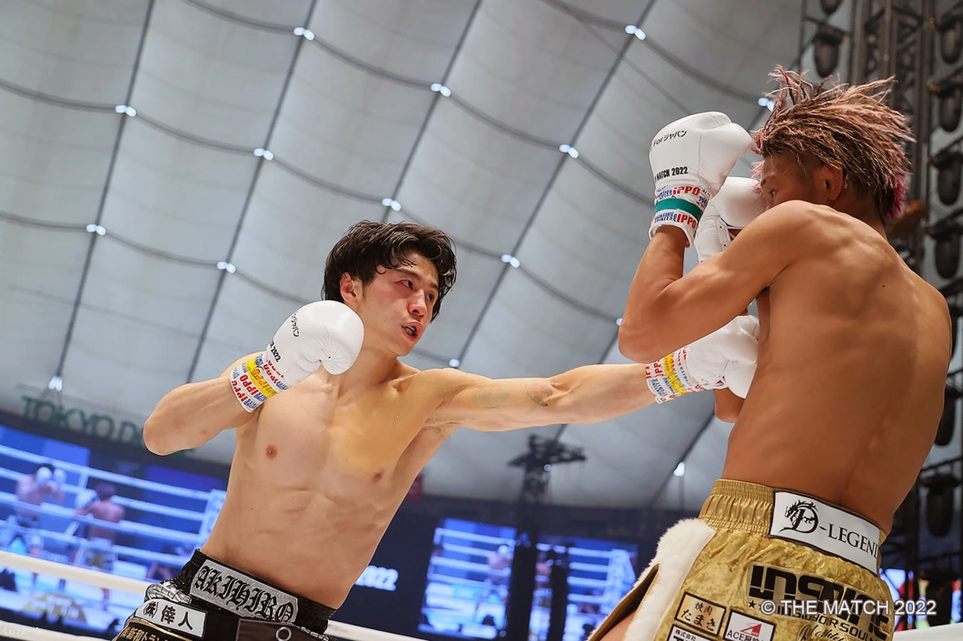 2R、鈴木が前進しワンツー、右ストレートを連打。至近距離では右ヒザを突き上げ金子のボディを削る。金子は左ジャブから踏み込んで左ボディ。変則的なフェイントから右ストレート、右フックで鈴木を攻め立てる。鈴木の入り際に金子が左フックを直撃させるが、鈴木は効いていないとアピール。金子が左ジャブで距離を詰めると、鈴木がカウンターで右ストレートを伸ばす。ラウンド終了直後には鈴木がフックで前進し金子にロープを背負わせる。