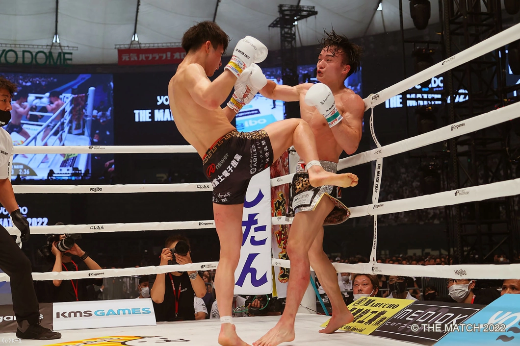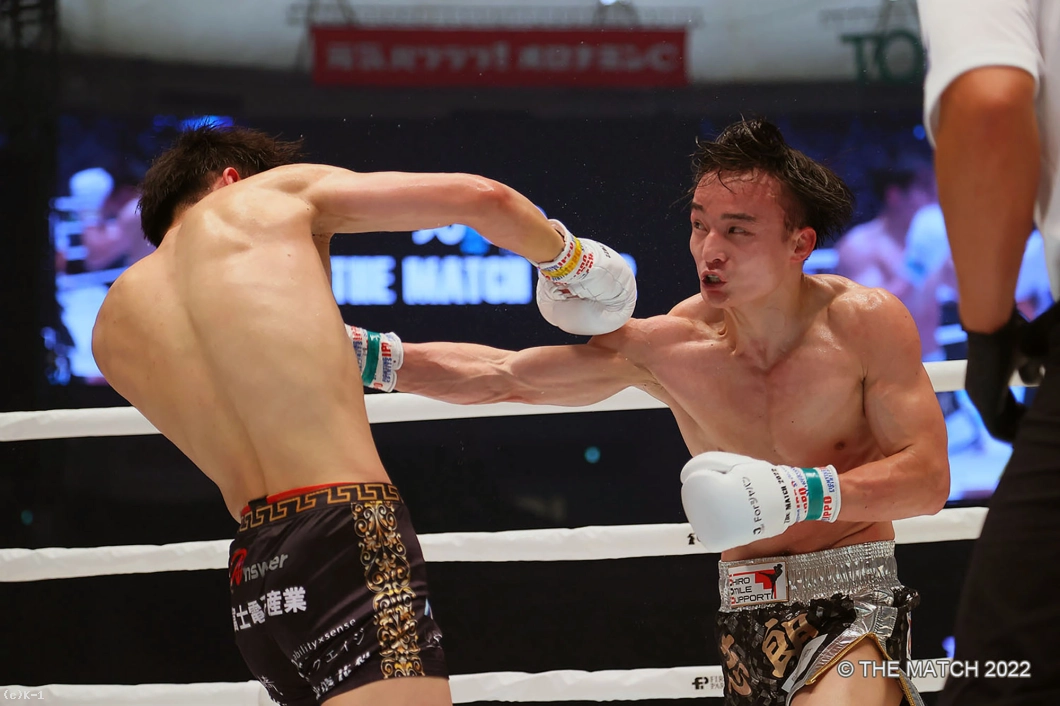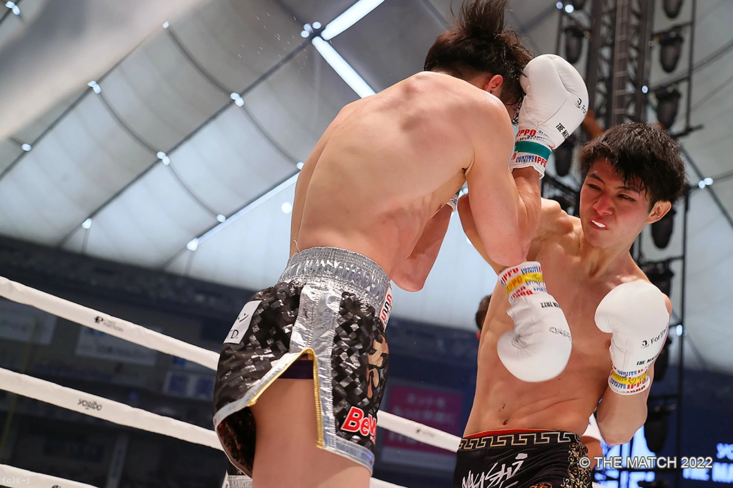 (ダウンを取るまでは志朗選手のペースのように見えたが、自分の感覚は?)ローキックとかも膝でカットしたり、自分的には全然大丈夫でしたね。ポイント的に取られててもアレかなと思ったんですけど、ダウン取る自信もあったし。最後には勝てると思ってたんで。はじめのキックで押した部分は志朗選手、上手でした。(ダウンを取った右のクロスは狙ってた?)そうですね、左ジャブをけっこう出してきてたんで。そのあと、狙えるなってずっとあったんで。ドンピシャで当たったっていう感じです。