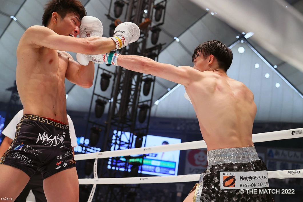 3R、距離を詰める玖村が右ストレートで志朗をロープ際まで吹き飛ばす。志朗はカウンター気味のワンツーで応戦。玖村の左ジャブ、右前蹴りにワンツーの連打で押し戻す。玖村は下がる志朗に飛び込むような左ボディ。プレッシャーをかける玖村を志朗が手数で押し戻す展開の中試合終了のゴングを迎えた。 判定は29-28、30-28、30-28の3-0で玖村の勝利。玖村がダウンのポイントを守り勝利を引き寄せた。