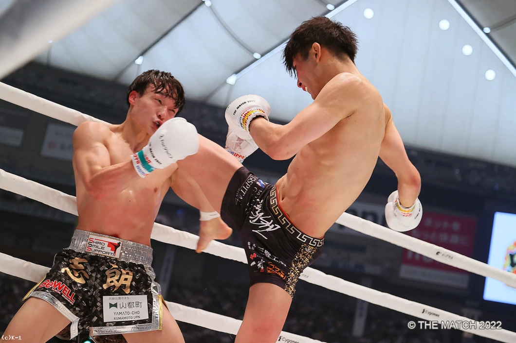 2R、すり足で前進する玖村を中心にリングを回る志朗。左ジャブから手数を増やす志朗へ、玖村は入り際にワンツー、右前蹴りを合わせる。手数は志朗が勝り、玖村の入り際に右フックをヒット。玖村は左三日月で距離を測り右ヒザ蹴りで飛び込む。下がる志朗の左フックに玖村がカウンターの右フックをヒットし志朗がダウン。立ち上がった志朗に玖村が迫るもラウンド終了のゴング。