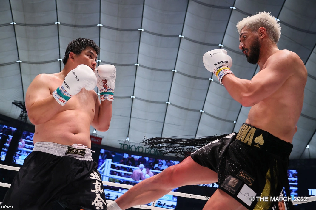 3R、カリミアンの右ローで山下はバランスを崩すが、ゆったりとした構えのまま山下が前進。距離を詰めワンツーを2mの顔面に突き上げる。カリミアンは下がりながらワンツーを突き刺すも山下は倒れず。バックハンドブローの直撃を受けても笑顔のまま山下は前進する。カリミアンは打ち疲れたか、パンチが大ぶりに。両者決め手がないまま試合終了のゴングを迎えた。判定はジャッジ3者の支持を集めたカリミアンの勝利。タフな山下を手数で圧倒し勝利を引き寄せた。