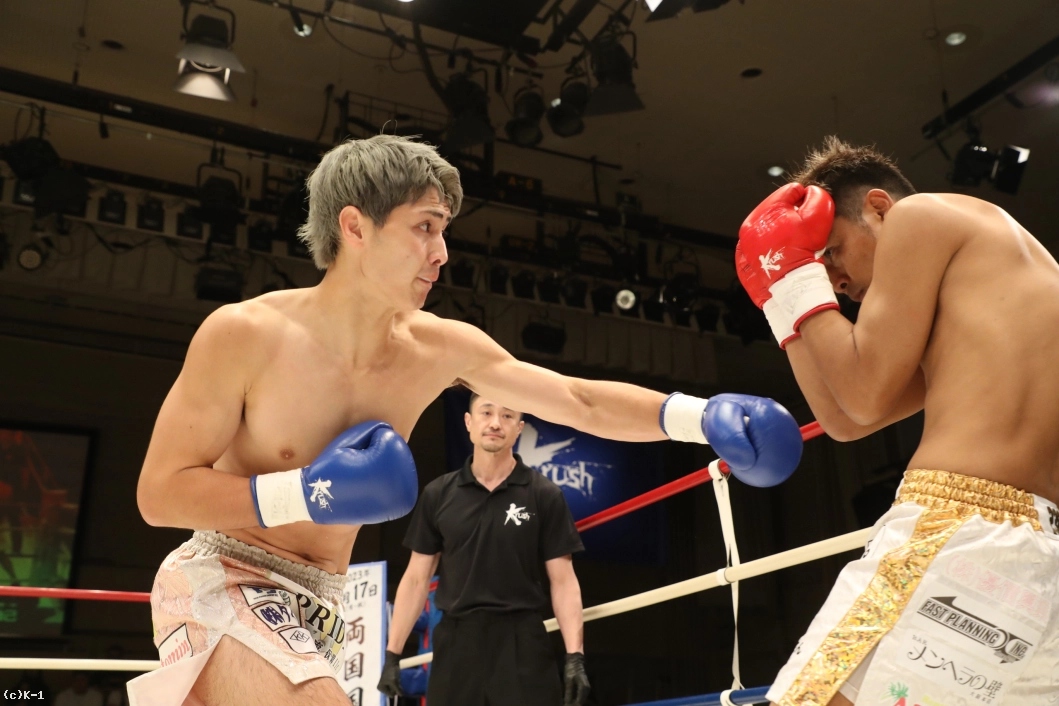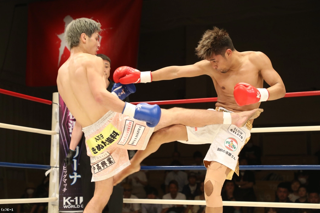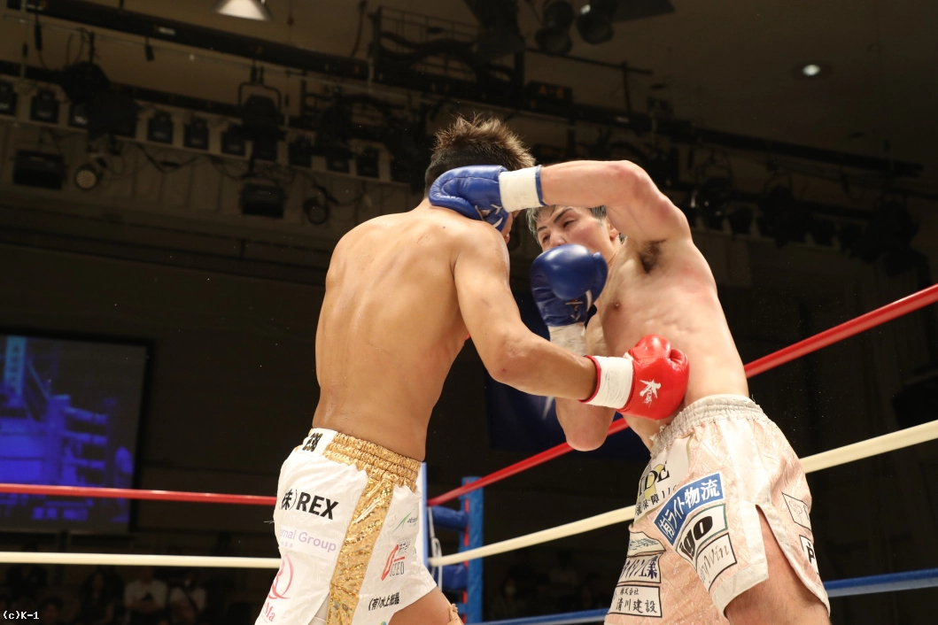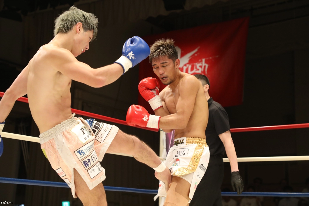 1R、大沢は左右前蹴り、ローキックとサウスポーの里見に先制。里見はプレッシャーをかけて大沢をコーナーに追い込む。大沢は高く上げたガードで里見のパンチを防ぎ、ローキックを返す。さらにボディフック、ミドルも打ち込み、里見にパンチをクリーンヒットさせない。