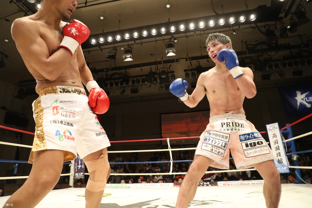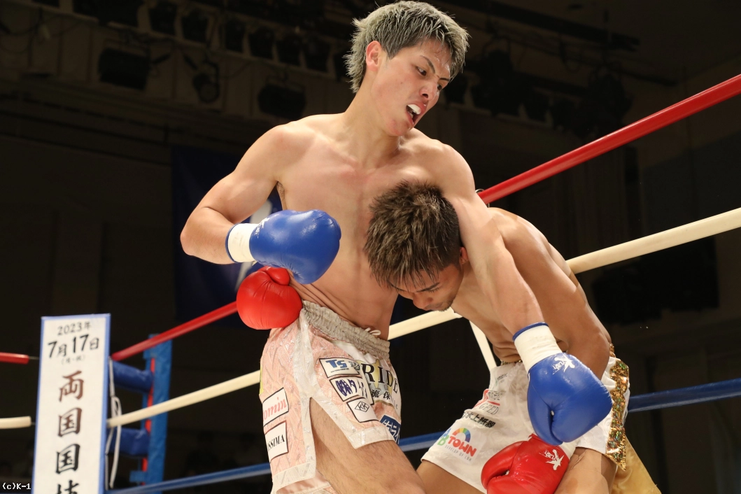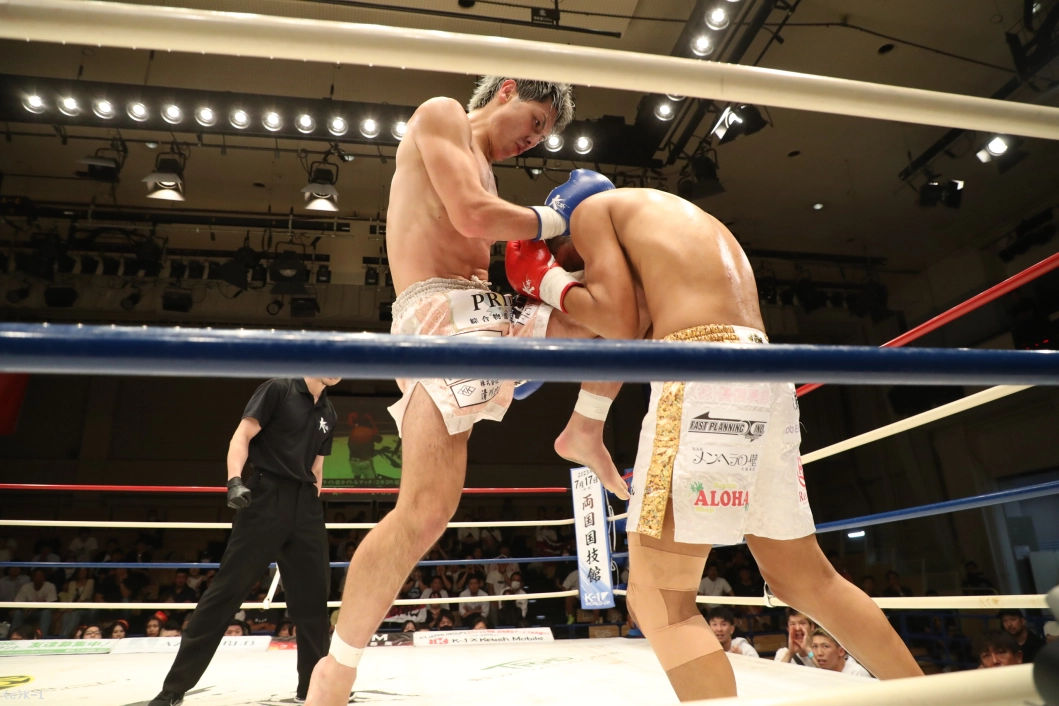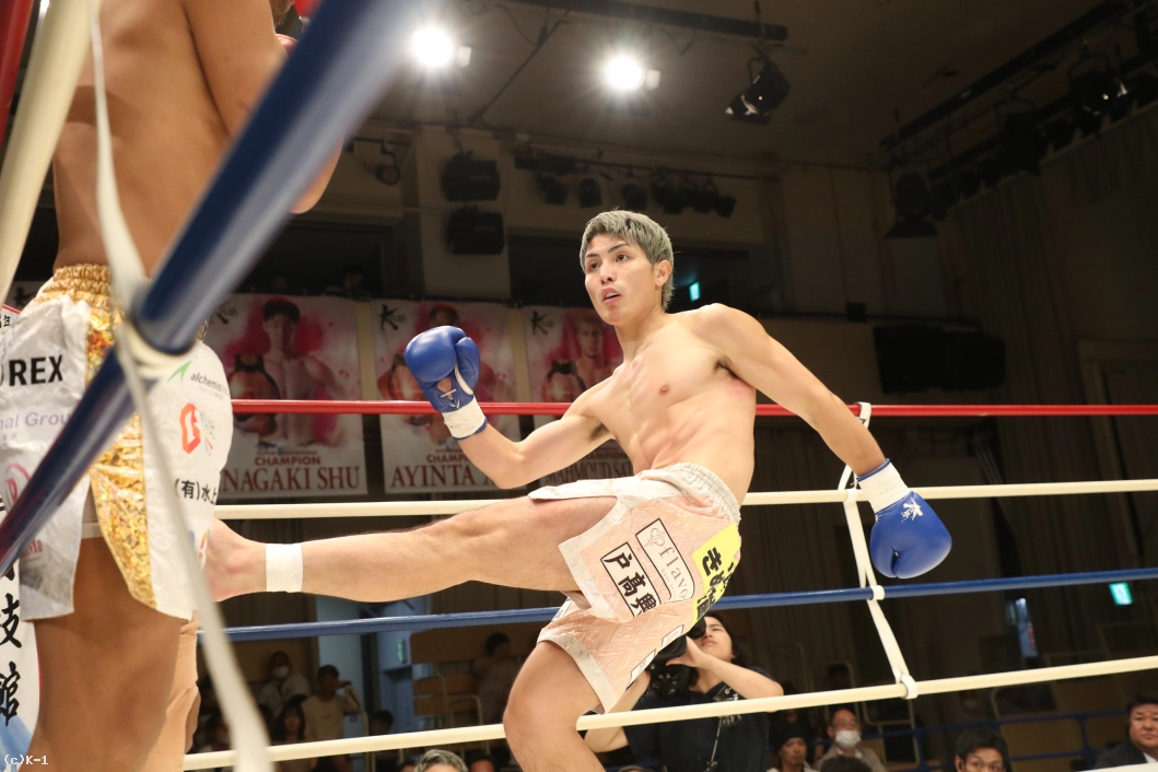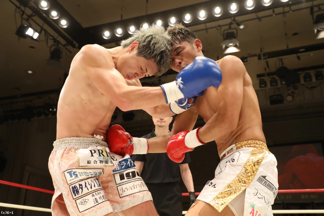 1R、大沢は左右前蹴り、ローキックとサウスポーの里見に先制。里見はプレッシャーをかけて大沢をコーナーに追い込む。大沢は高く上げたガードで里見のパンチを防ぎ、ローキックを返す。さらにボディフック、ミドルも打ち込み、里見にパンチをクリーンヒットさせない。