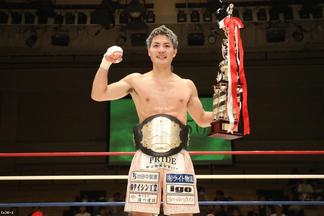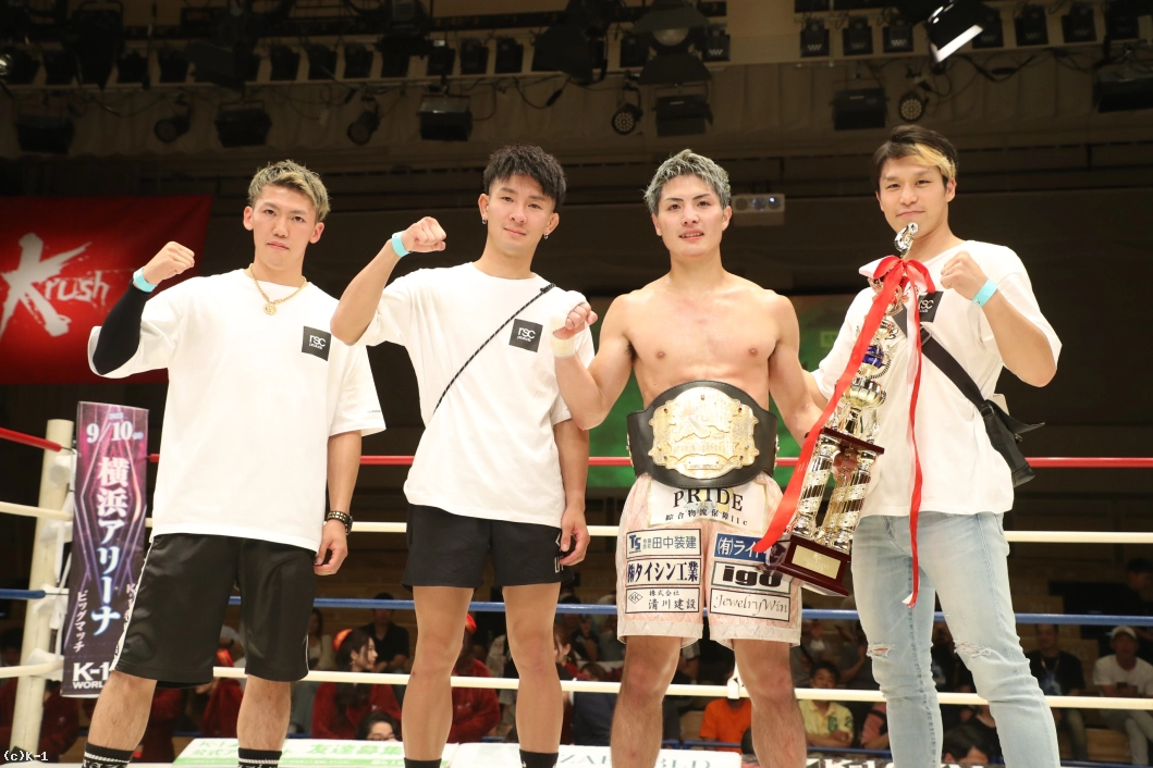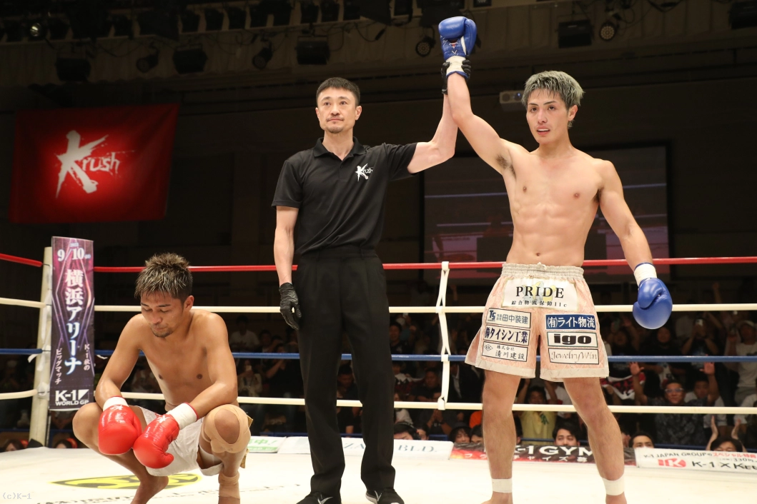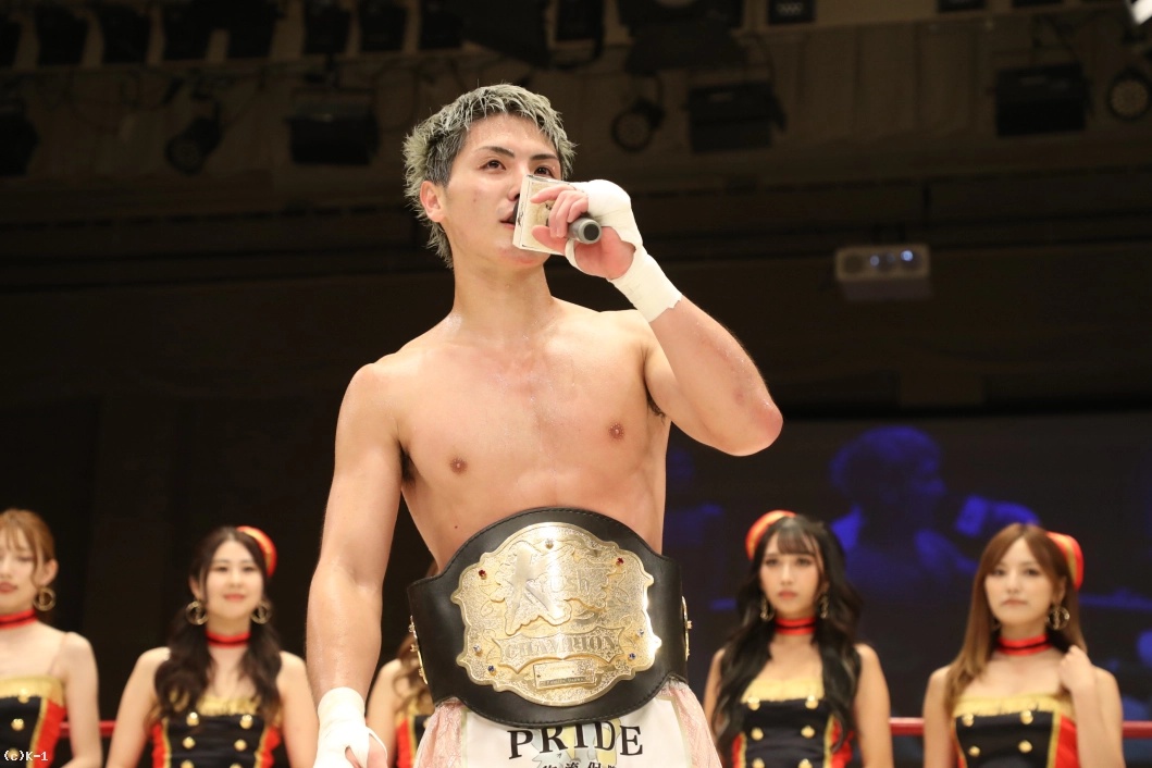 実は昨日赤ちゃんが生まれたんです。6月が予定日で1月は意地でも負けられなかったんですけど、昨日無事に男の子が生まれました。生まれた次の日にお父さんがチャンピオンになるってなかなかないでしょ。カッコいいパパになれるよう頑張るので応援してください。このベルトの価値を高めて、K-1・Krushを大きくできるようにしていきます。与座(優貴)くんと朝久(泰央)くんが同じ年で活躍していて悔しいので追いついていきます。怪我もないので、9月のK-1横浜大会出させてください」