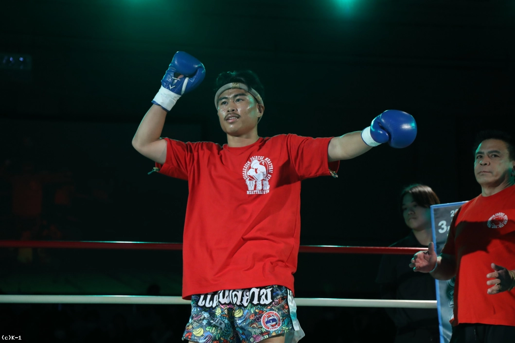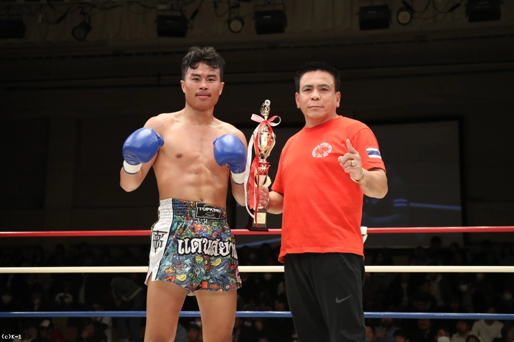 3R、相変わらず前に出てくる町田に対して、デンサヤームは左のミドルキック。立て続けに左ミドルキックを打ってから、パンチを合わせるデンサヤーム。それでも下がらない町田もパンチを打って応戦だ。だが、デンサヤームは左のヒザ蹴り。さらにパンチを連打する。ラウンド終盤にも左のミドルキックを連打。町田に反撃を許さず、試合終了となった。判定は30-28、30-28、30-29の3-0でデンサヤームが手堅く勝利。嬉しいK-1 GROUP初勝利となった。