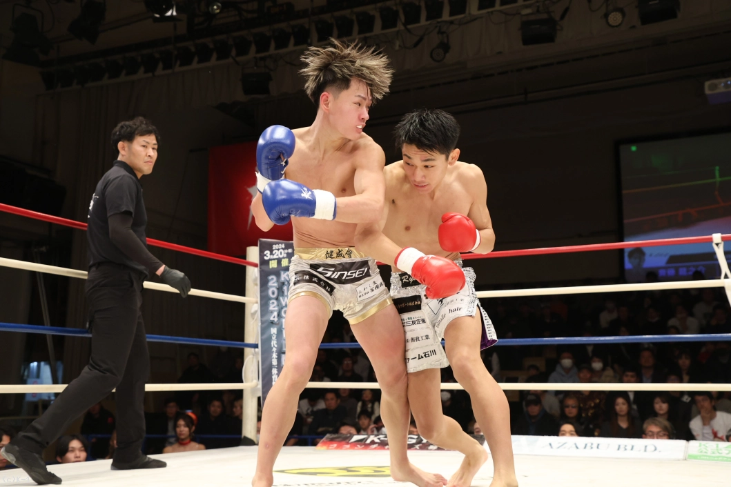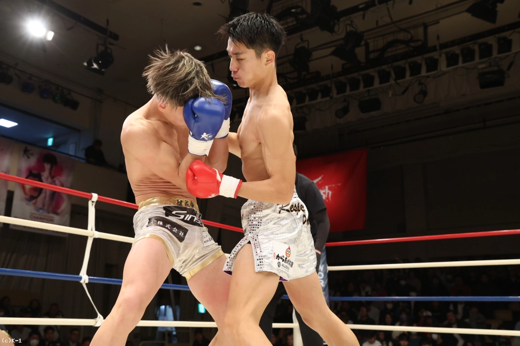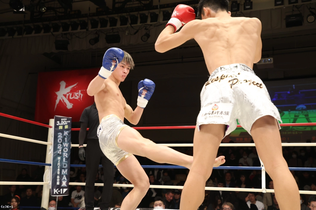 2R、愛瑠斗はパンチ、蹴り、さらにバックブローを繰り出して前に出る。齊藤は左のストレートからローキックのコンビネーション。愛瑠斗は右のカーフキックを放つが、齊藤はパンチで応戦していく。残り1分のところで愛瑠斗はコーナーに追い込んでパンチの連打。さらに愛瑠斗は右のカーフキックからミドルキックだ。齊藤も終了間際にバックブローを放つが、愛瑠斗には当たらない。