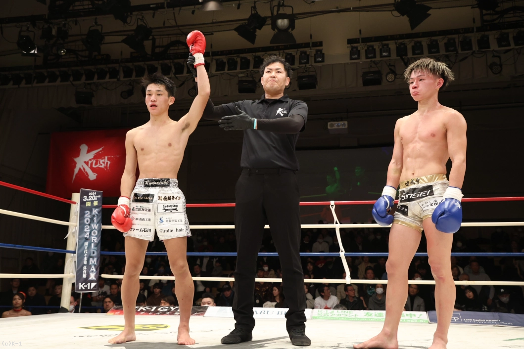 3R、前に出る愛瑠斗。齊藤もパンチを連打して応戦。ローキックを炸裂させていく。だが、下がらない愛瑠斗は前蹴りで前に出るが、これが齊藤に対してローブローとなり試合中断だ。再開後、前に出ていく愛瑠斗に対して、齊藤はカウンターの右ストレート。齊藤はローキックを連続で繰り出すが、愛瑠斗も下がらない。齊藤は下がりながらヒザ蹴り、左のミドルで応戦だ。しかし、コーナーに詰めた愛瑠斗はパンチを連打。齊藤は回り込んで、右のヒザ蹴りを放ってやり返す。最後は愛瑠斗が右のフックを当てたところで試合終了。判定は30-28、30-28、30-28の3-0で齊藤が勝利をもぎ取った。