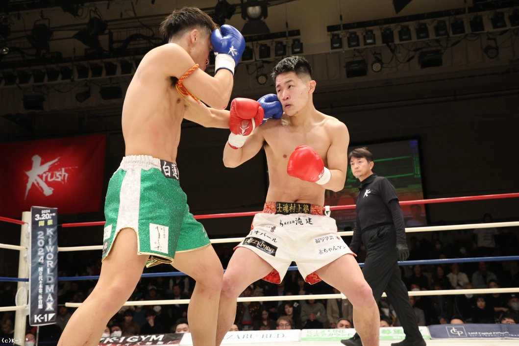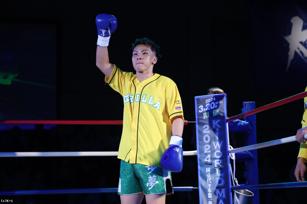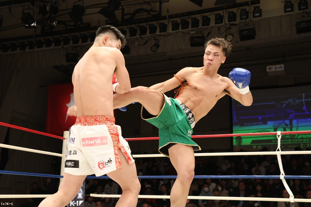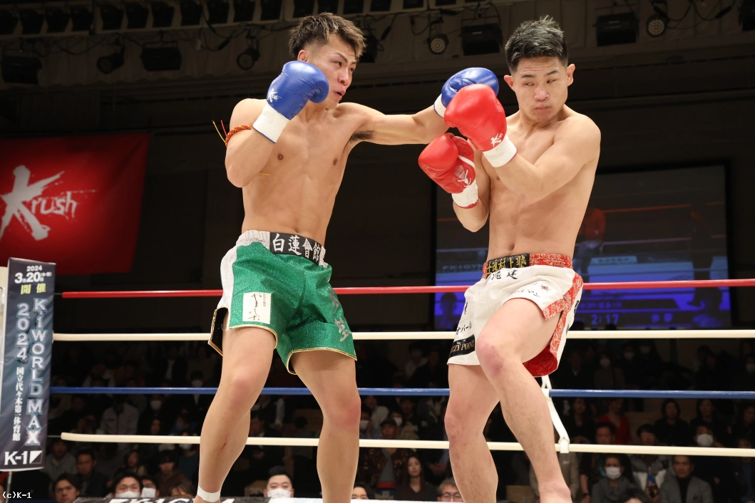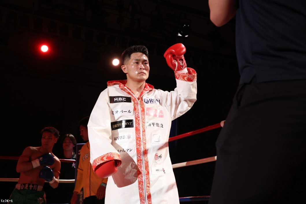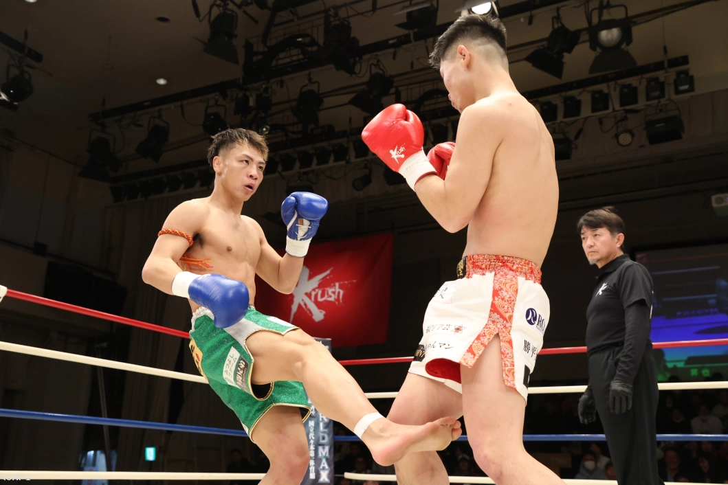 3R、歩夢の左フックが当たるが、昇也は下がらない。警告を与えられた後にもパンチを当てる歩夢だが、昇也は前に出てパンチで打ち返していく。フック、ヒザ蹴りで攻める歩夢。それに対して昇也ボディブロー。ならばと歩夢もパンチを振るって攻め手を緩めない。右のフック、ヒザを出したが、昇也の右フックでダウンを喫してしまう。だが、歩夢が立ち上がったところで試合終了。判定は28-27、28-27、28-27で3-0となり、昇也が判定勝利となった。