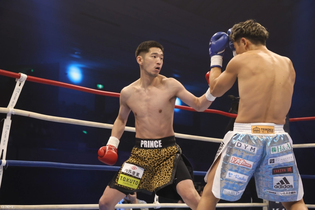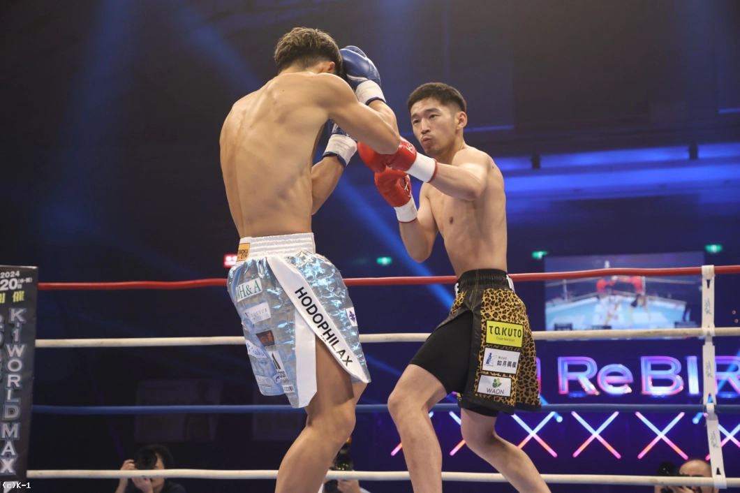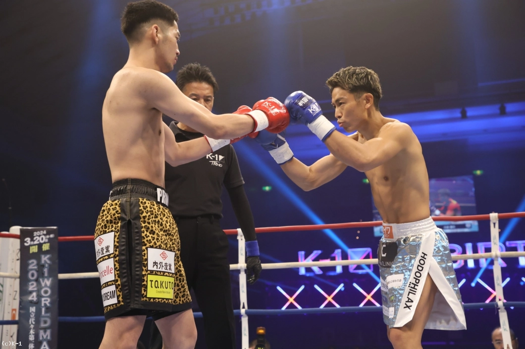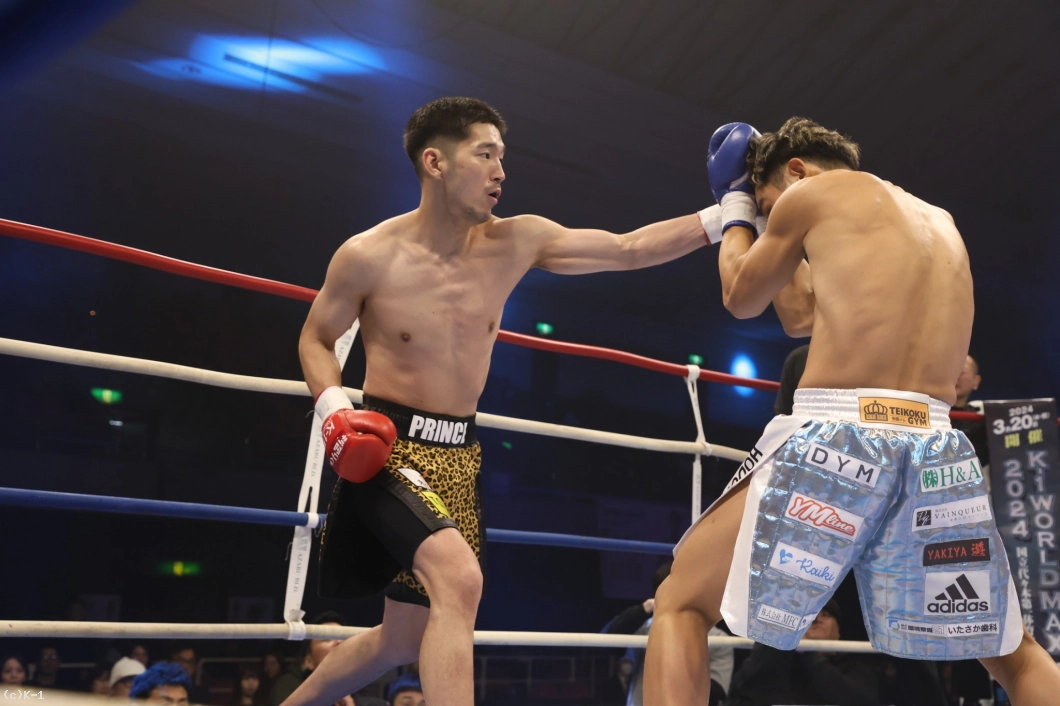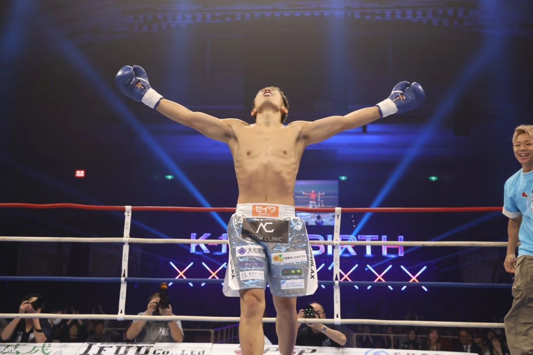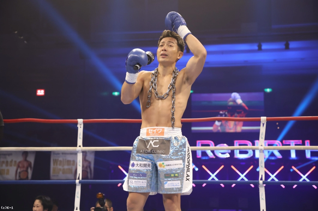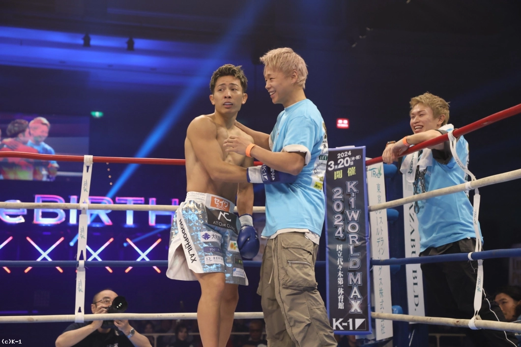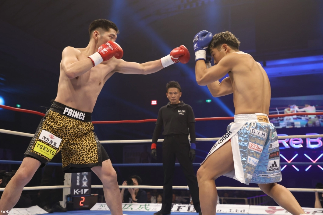 1R、大岩は右のカーフキックを蹴っていく。篠原は回りながら、右、左のパンチを打っていく。篠原は左をつくも、大岩は右フックを合わせに行く。篠原は左、右を放って行くと大岩は右フック。そして、大岩が打ち合いの中で左をヒットして、そして右でダウンを奪う。立ち上がった篠原だが、レフェリーが試合をストップした。