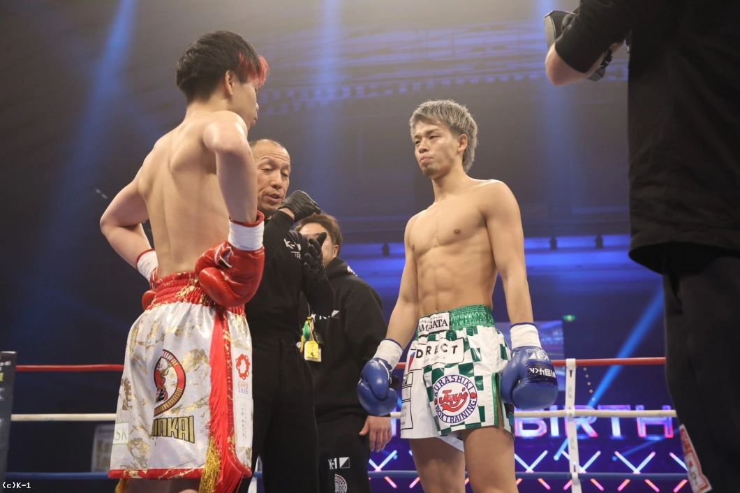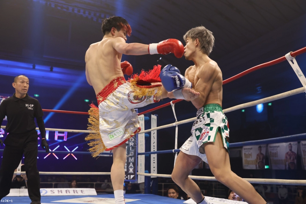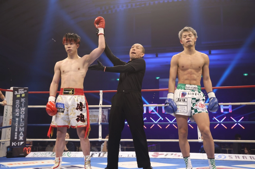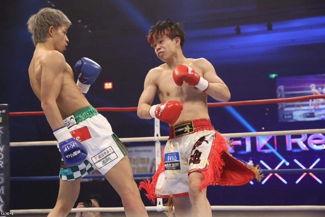3R、健介は前へ出て、左ハイキック。椿原の右フックが当たる場面も。健介は、回りながらフックを放つ。近い距離で健介はパンチ、さらにハイキックを繰り出す。椿原の左フックで健介がバランスを崩すシーンもあった。判定は3-0で椿原が勝利を収めた。