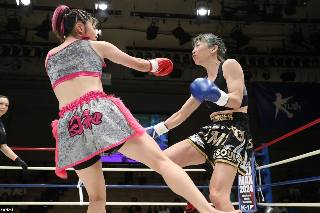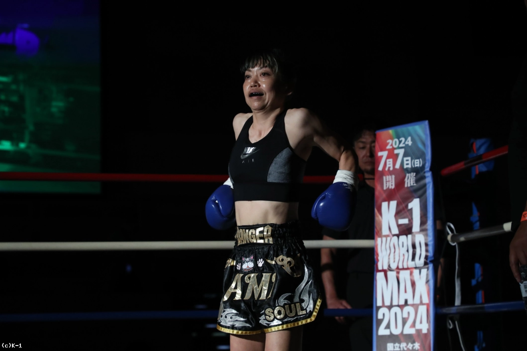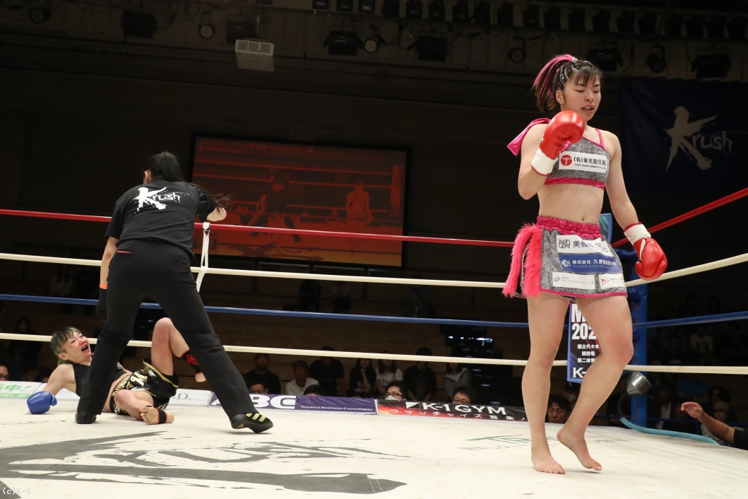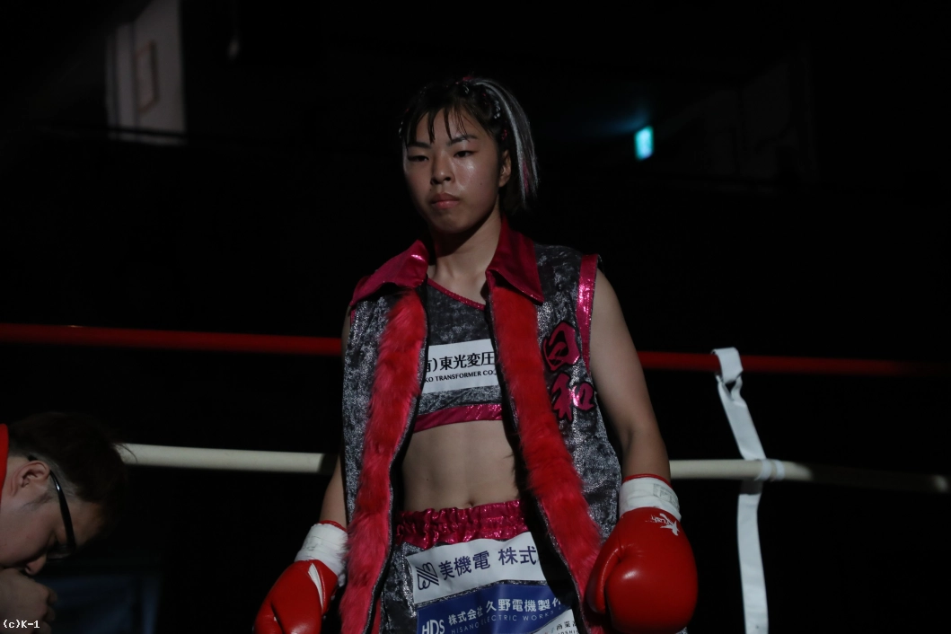 3R、大西が圧力を掛け左の蹴りをミドル、ローと散らす。aimi-は下がりながら右前蹴りで突き放すが、大西は強引に距離を詰め左ストレートをヒットさせダウンを奪取。レフェリーはカウントを取らずに試合をストップし、大西のKO勝利を告げた。大西は初の後楽園ホールの登場でデビュー3連勝を飾った。