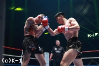 2R、オウヤンはジャブから右。シュロスは左ミドルキック。オウヤンは右から左のパンチで攻撃。シュロスは前蹴り、右のパンチ。オウヤンは左ハイキック。シュロスのヒザ蹴りに対してオウヤンの右が入り、ダウンを奪う。立ち上がるシュロスにボディ打ちのオウヤンは、アッパー、ボディ打ちで追撃する。シュロスは攻め手がないか、攻撃を受ける場面が目立った。