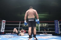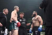 1R、まずイストラテが左フックでダウンを奪取。カウント8で立ち上がったカリミアンにイストラテが追撃、カリミアンが組み付く形になる。その際、それを振りほどこうとしたしたイストラテのグローブがカリミアンの後頭部にヒットし、倒れ込むカリミアン。