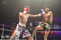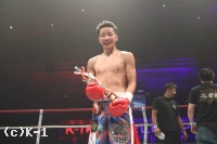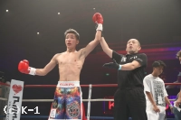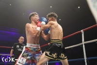 1R、稜賀は下がりながら左ハイキック。龍翔は圧力をかけていき、右を放つ。稜賀は蹴りからアッパー、右のコンビネーション。そして稜賀は押されながらも蹴りを返す。龍翔は前へ出ながらパンチ。さらに龍翔は右のパンチでダウンを奪う。立ち上がれない稜賀。龍翔がKO勝ちを収めた。
