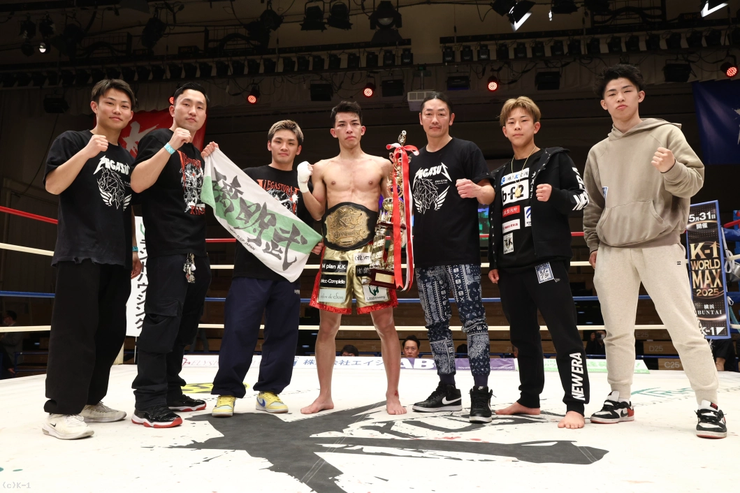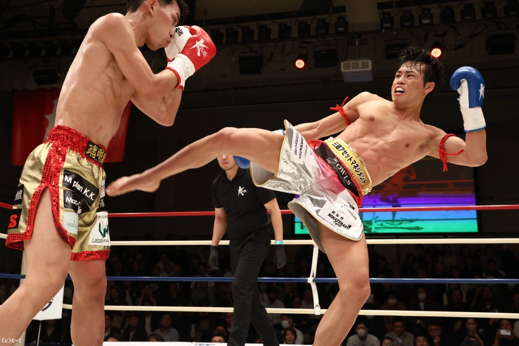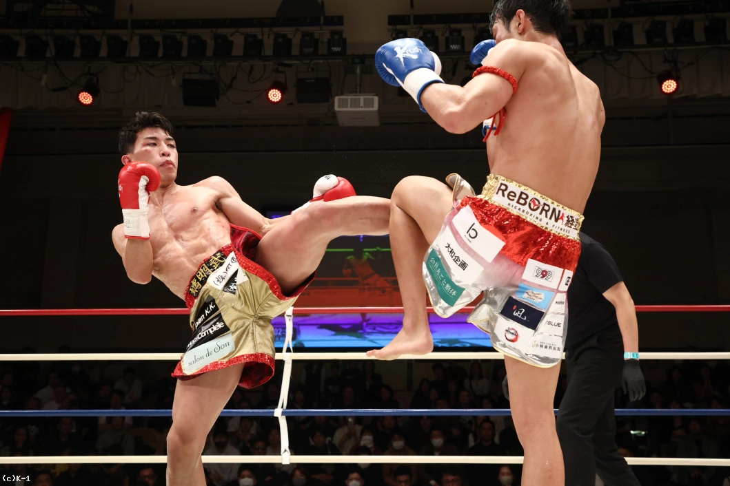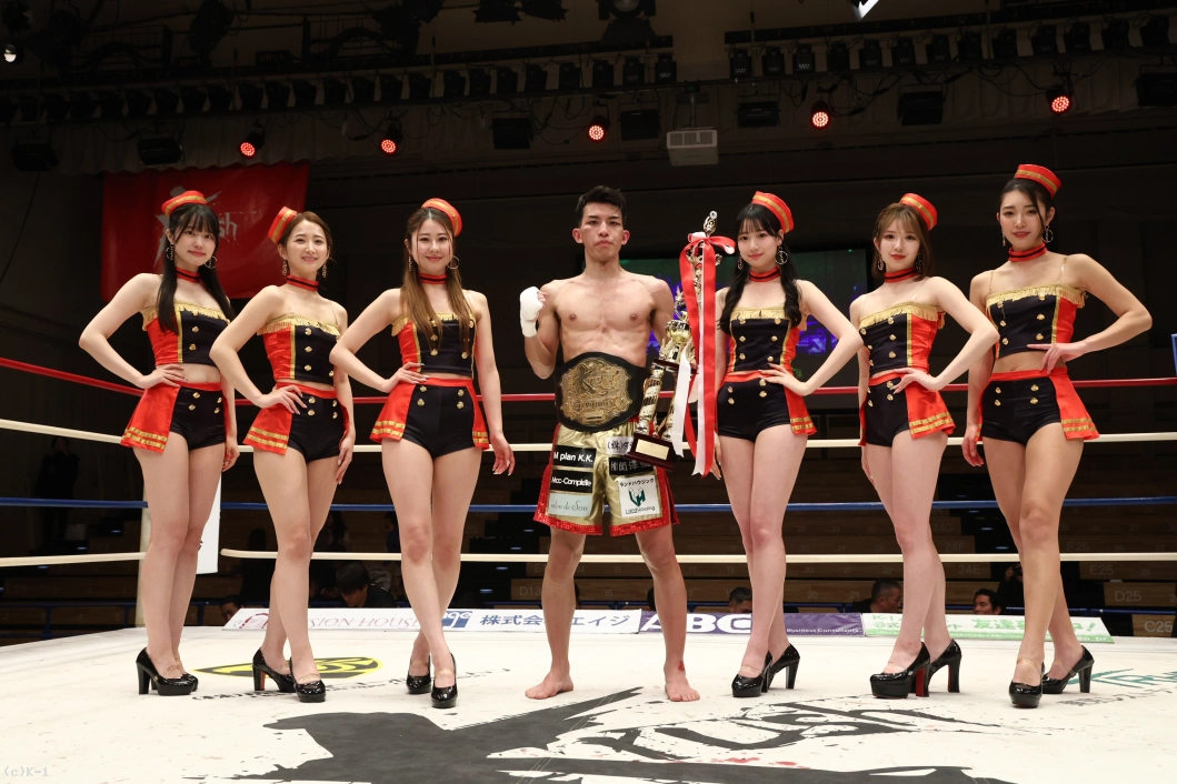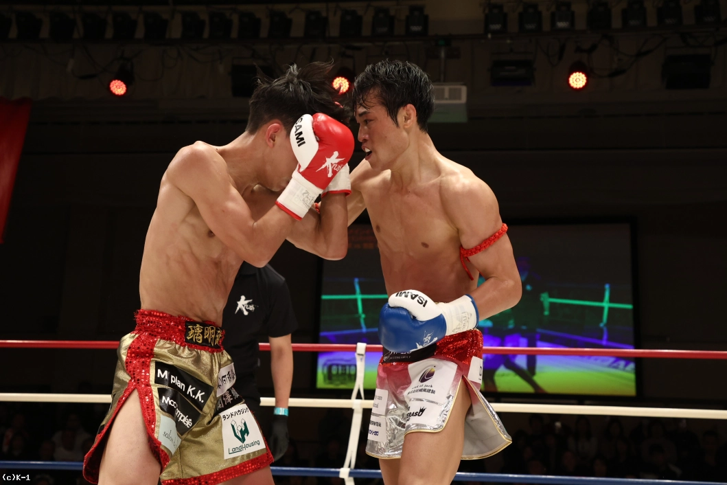 「今日もたくさんの応援ありがとうございました。本当はもっと圧倒的に勝って、勝ちたかったんですけど、相手の池田選手も元々わかってたんですけど、凄い強い選手だったんで、もう接戦で最後キツい、厳しい展開になったんですけど、そういう時に自分は一人で戦っているわけじゃないんで。普段から凄いたくさんの方に応援してもらって、スポンサーの方とかにも支えてもらって、自分はこの競技に人生を懸けて生活しているので、そこで接戦だったんですけど、必ず勝たないとなと思って、本当にいつも応援してくれる方のことが延長に入る前に頭に出てきて、その人たちと一緒に喜びたいなと思って、最後、本当に自分は技術にこだわっているんですけど、最後は気合いで気持ちで勝ち切ることができました。本当に皆さんのおかげです。いつもありがとうございます。自分はずっと発言しているんですけど、K-1のチャンピオンになるために毎日過ごしているので、その目標は今も変わらないので、今年もドンドン試合して勝って、K-1チャンピオンに必ずなるので、皆さん、これからもよろしくお願いします。ありがとうございました!」