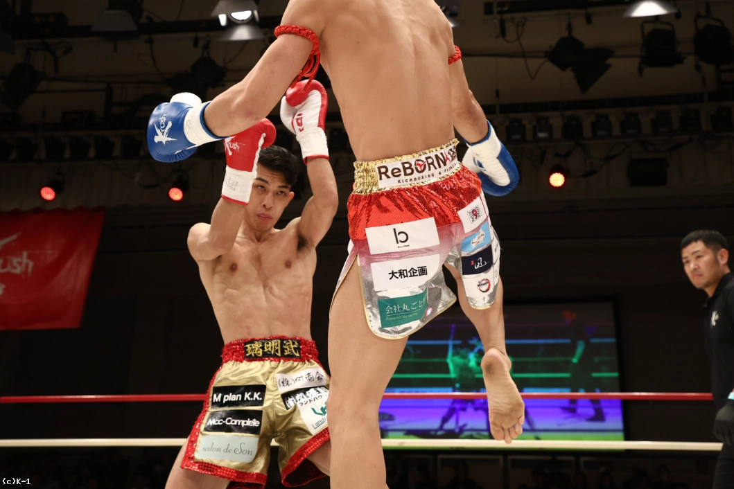 1R、池田は左のローキック、ミドルキックを繰り出す。一方の璃明武は左の前蹴りを繰り出しつつ、プレッシャーをかけていく。ジリジリとプレッシャーをかけていく璃明武は、池田をコーナーに追い込む。しかし、池田もミドルキックを放って前に出る。池田は右のサイドキック。しかし、璃明武はプレッシャーをかけつつ左のボディブロー。さらに抱き合ったところからの離れ際で、璃明武が左のハイキックだ。璃明武は回し蹴り。