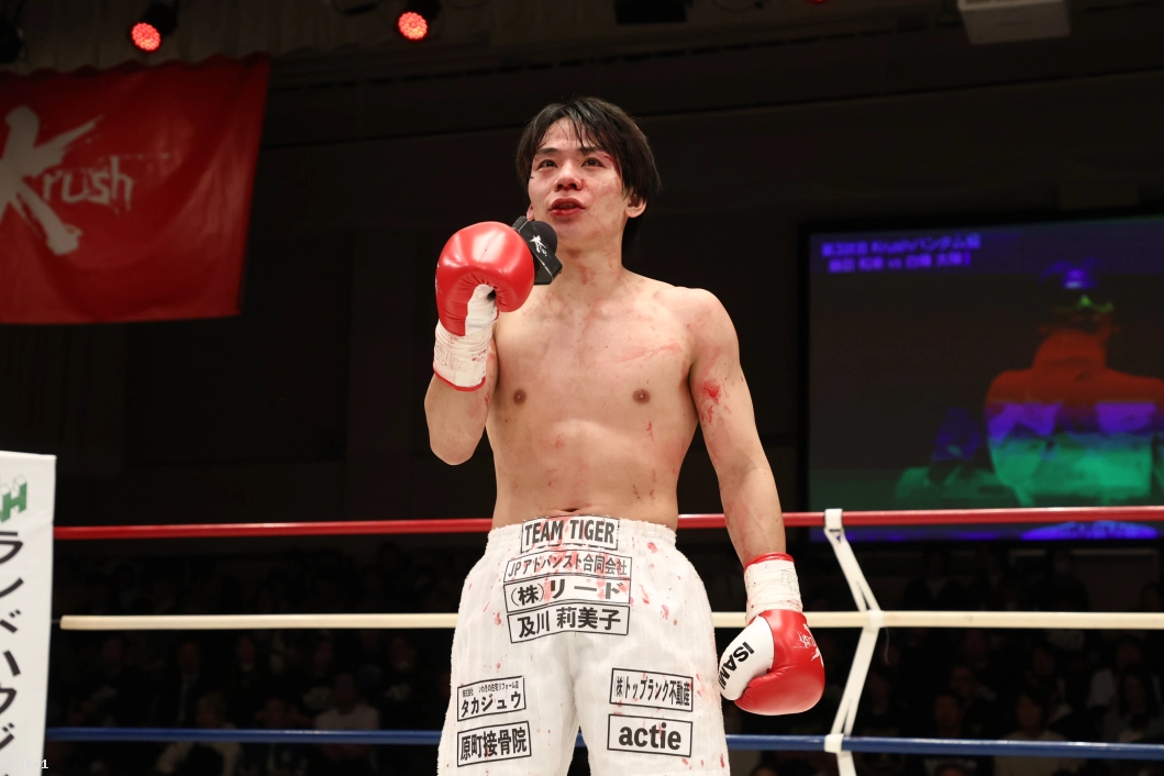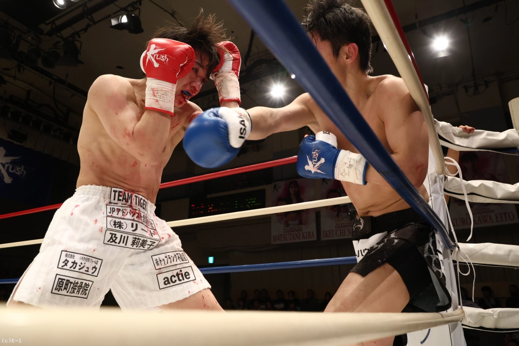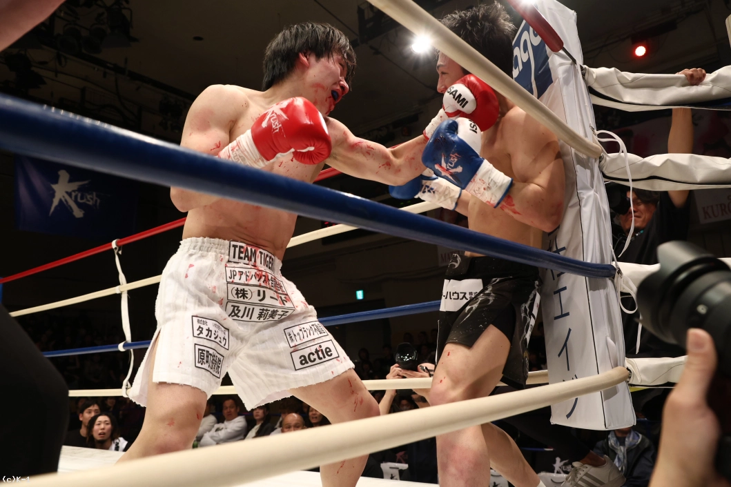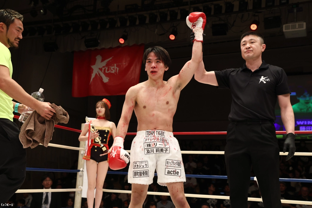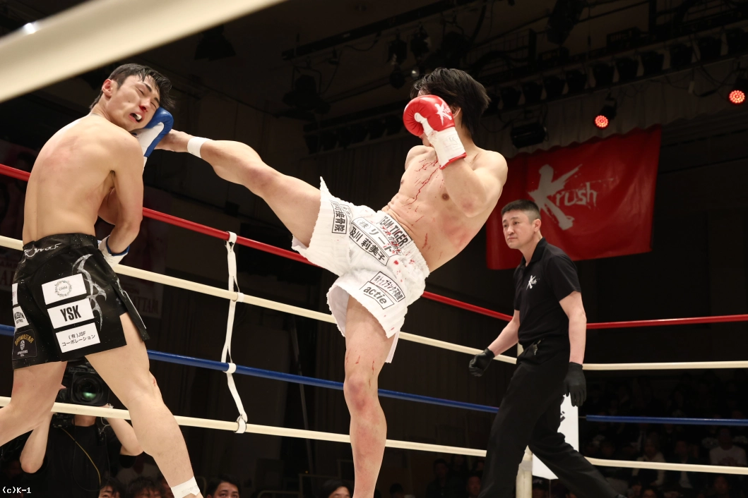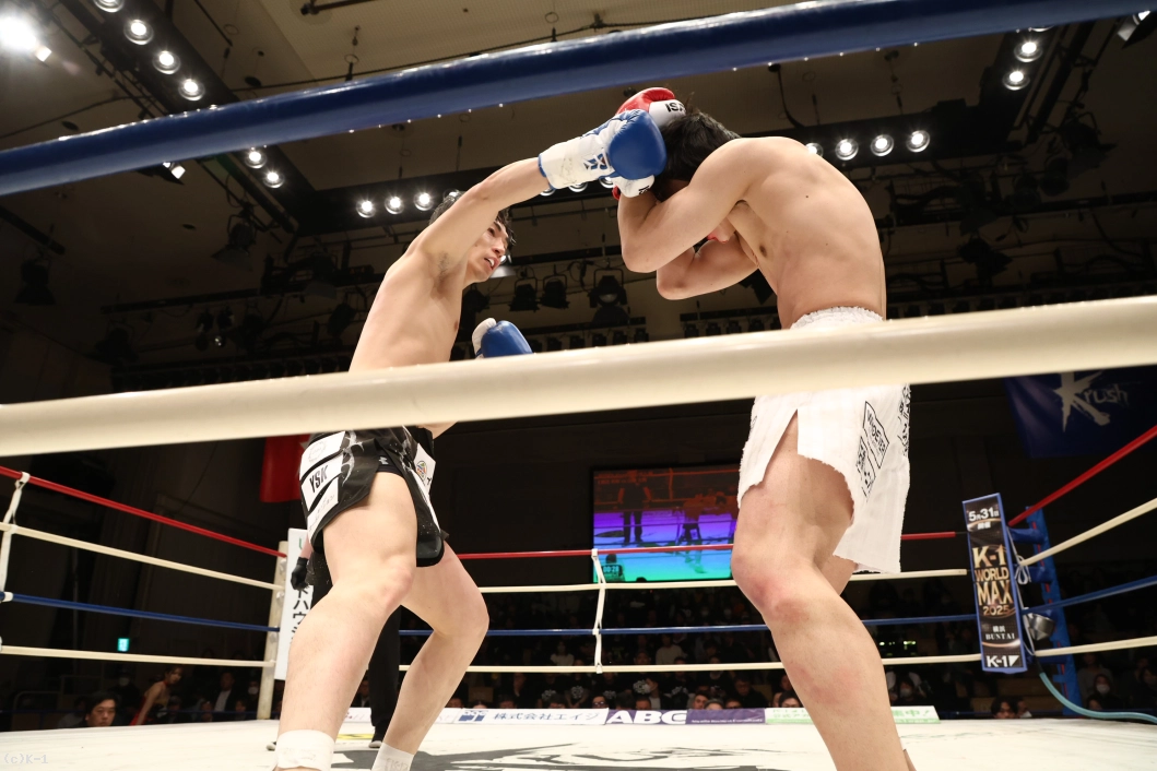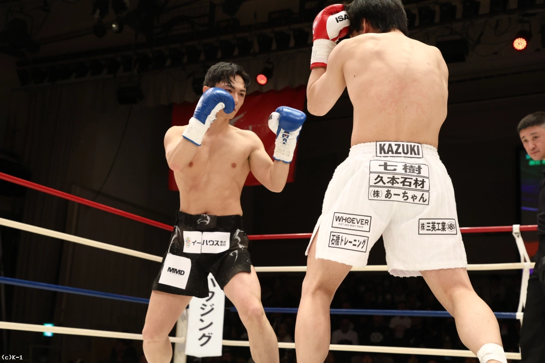 3R、藤田はパンチを繰り出しながらプレッシャーをかける。だが、白幡もパンチで応戦。藤田の顔面にヒットさせる。下がりながらもパンチをヒットさせ、飛びヒザを繰り出す白幡。だが、下がらない藤田は白幡をコーナーに追い込んでパンチを連打。顔面、ボディと連打し、ついに右フックで白幡がダウン。3R1分44秒で藤田がKO勝利となった。