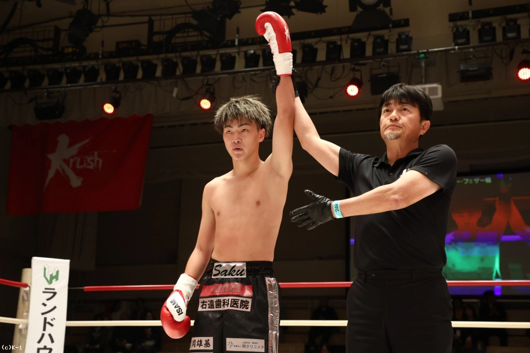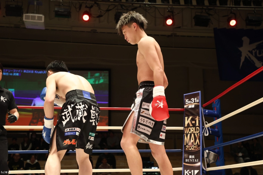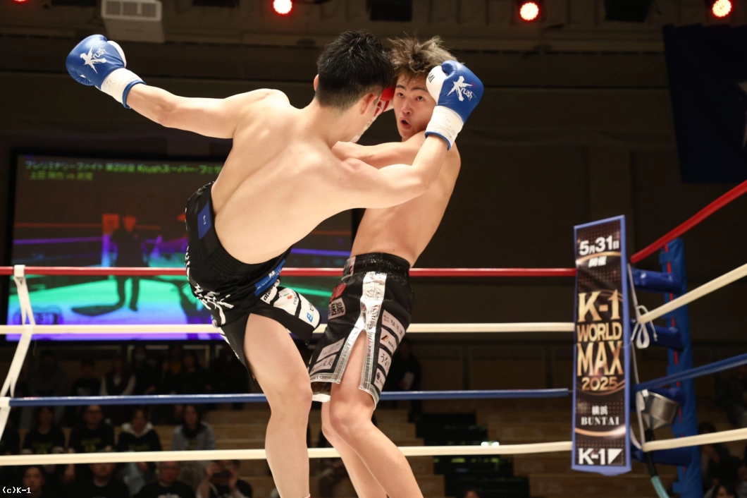 プレリミナリーファイト第2試合はKrushスーパー・フェザー級の一戦、上田咲也vs武蔵。上田はK-1甲子園2022 -65kg王者という実績の持ち主だが、プロでは2戦して2敗。対する武蔵も第46回・第57回K-1アマチュア チャレンジAクラス -65㎏優勝という実績を持っているが、プロでは1戦して1敗。両者ともK-1 GROUPでプロデビューを飾っており、この一戦でプロ初勝利を目指す。