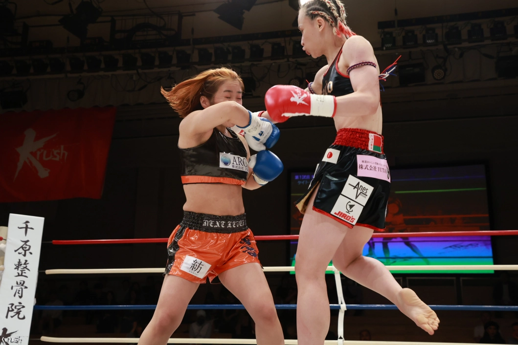 第1試合は女子-50kg契約の一戦。ケイト・ウィラサクレックと恵音が拳を交える。ケイトは2003年11月生まれの21歳。2023年7月の青木繭戦以来、約1年10ヶ月ぶりのリングに上がる。対する恵音はKPKB(九州プロキックボクシング)女子バンタム級王者の肩書きを持ち、戦績は3戦3勝。この試合がKrush初参戦となる。