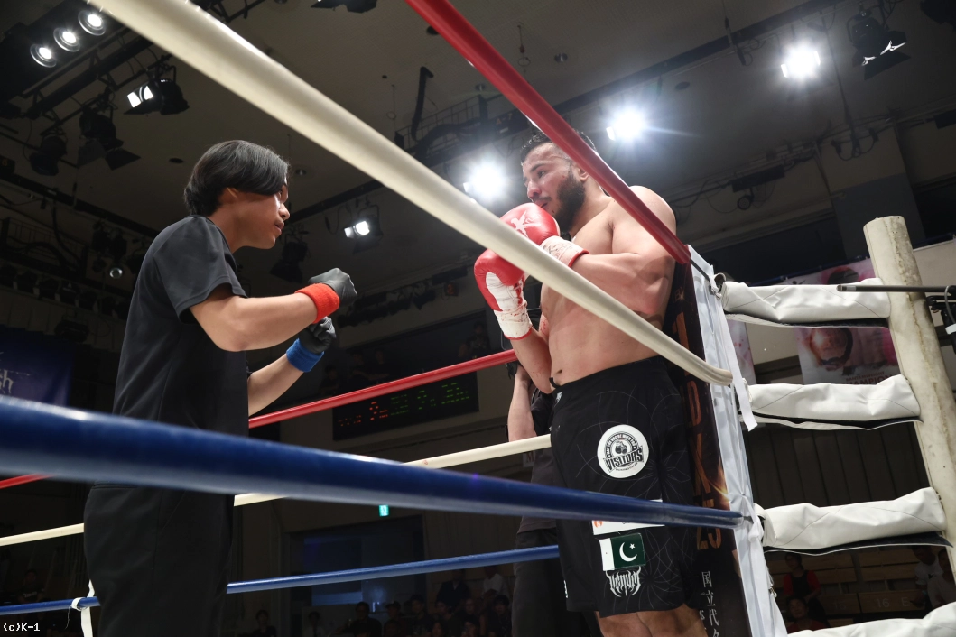 1R、サウスポーにスイッチしたシルバへ、ブハリが強い右インロー。リーチに勝るシルバは長いワンツー、右ミドル。ブハリの顔面に左フックを直撃させコーナーへ下がらせる。ブハリはシルバの強いフックで前進できず、ロープを背負って防戦一方に。右アッパー、左ボディと被弾し続けるがゴングまで耐えしのぐ。