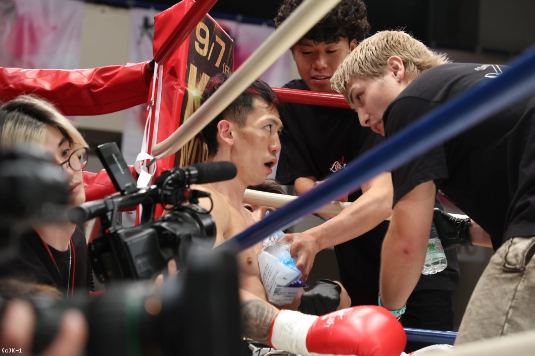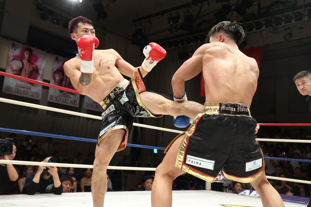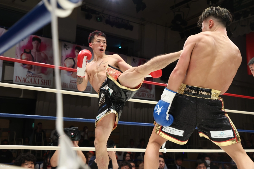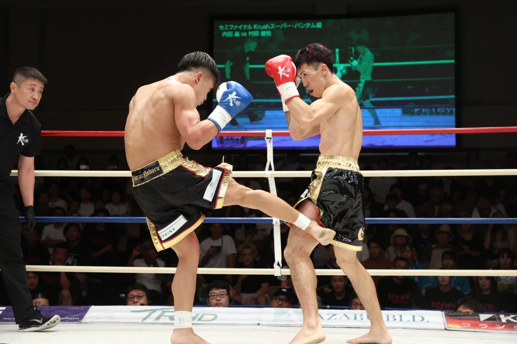 3R、内田の左ジャブに合わせて村田が右ロー。村田が右ローから左フックで飛び込むが、内田が右ロー、ミドルで懐に入れさせない。鼻血を出す村田はガードを高く構え右ローを連打。下がる内田のボディへ左三日月を突き刺し、内田からダウンを奪う。内田は逆転を狙い攻勢を強めるが、村田も応戦し終了のゴングを迎えた。